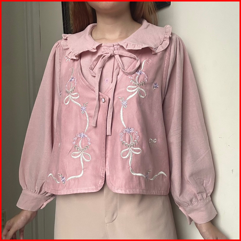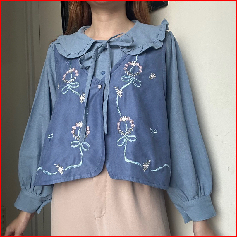 Marella Top 2 Pcs Vest Set Atasan Kemeja Blouse Bordir Korean Style By Biel The Label