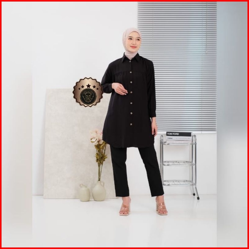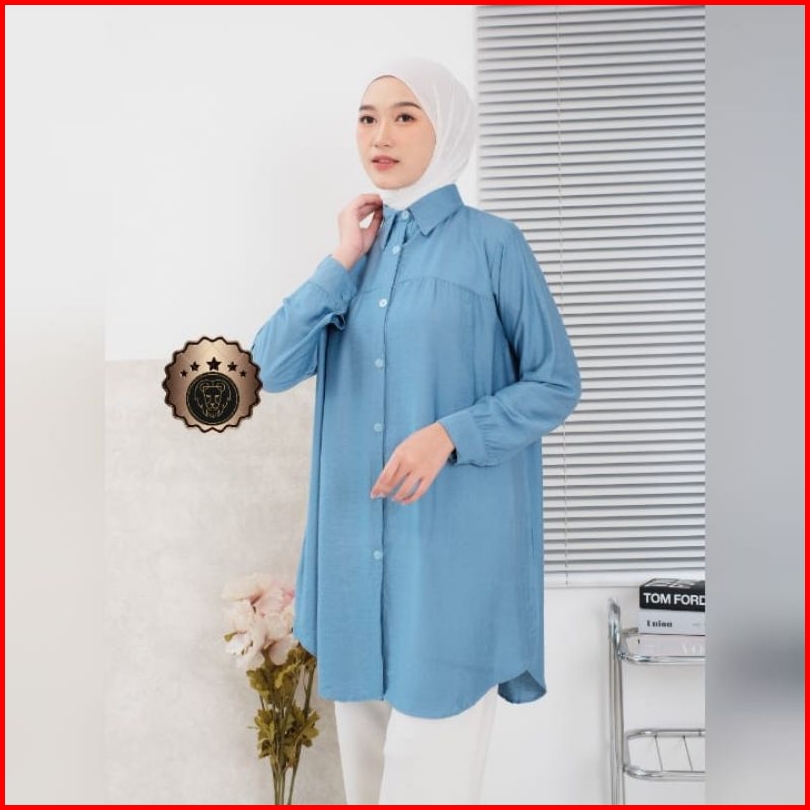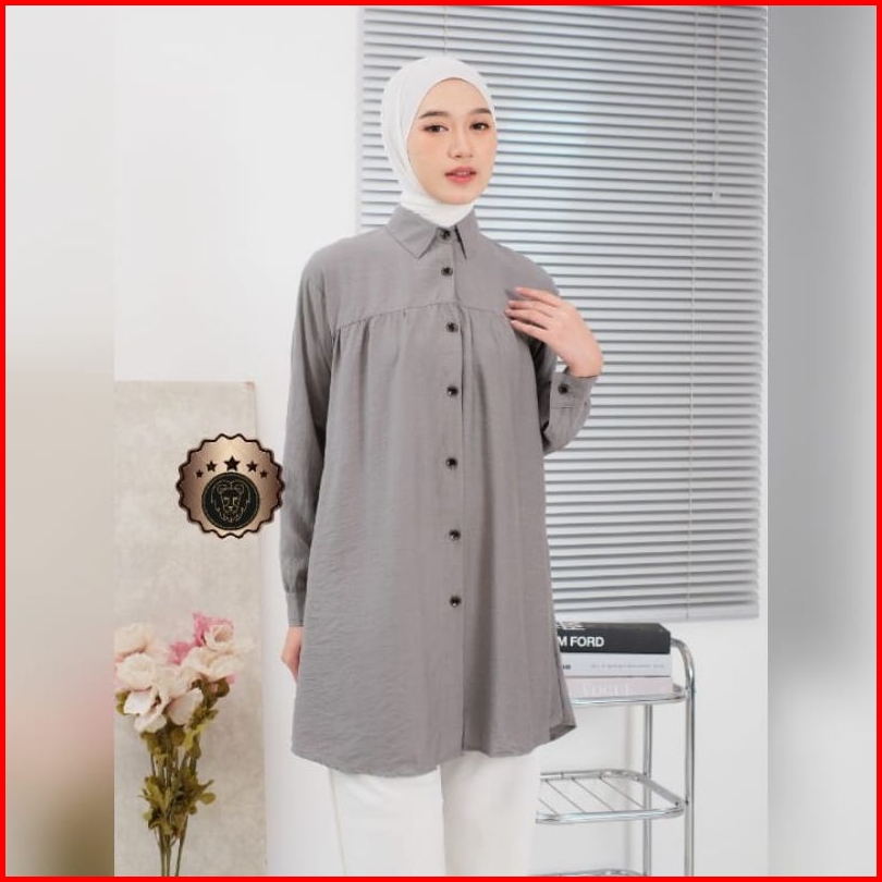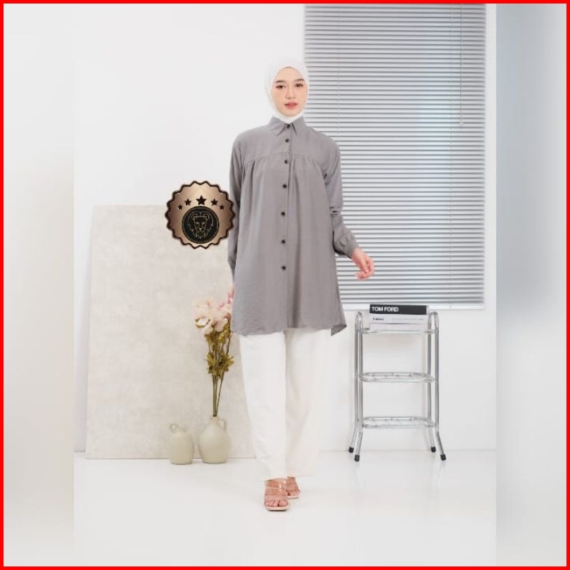 Atasan Wanita Tunik Terbaru Zella Tunik Polos Linen Kancing Depan Belakang Kemeja Wanita Polos Tunik Polilinen