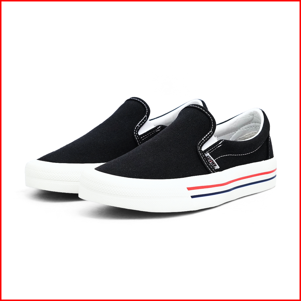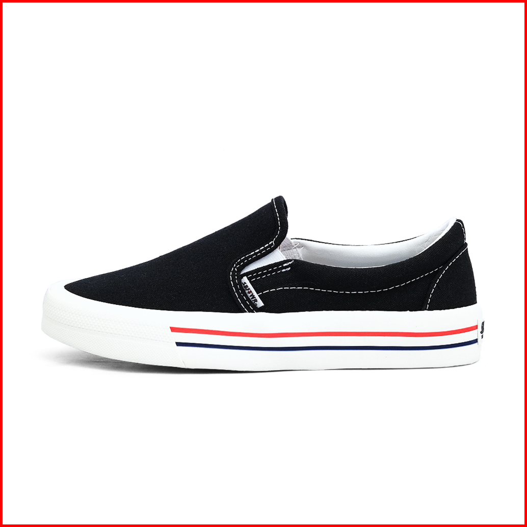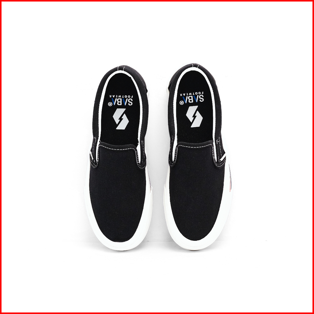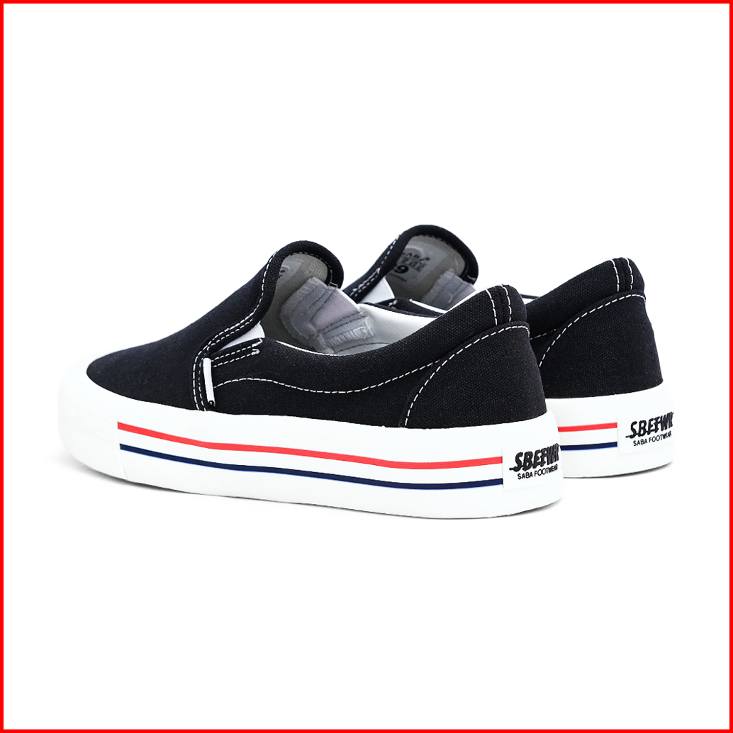 Saba Vintage Slip On Black White Lx Red - Sepatu Sneakers Casual Pria Wanita Original 100 Vtg 01