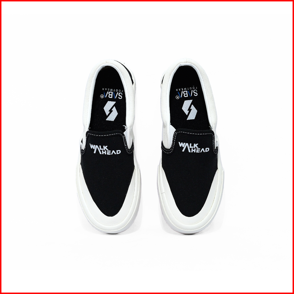 Saba Slip On Uplocgs Half Black White- Sepatu Sneakers Casual Pria Wanita Original 100 Upc 01