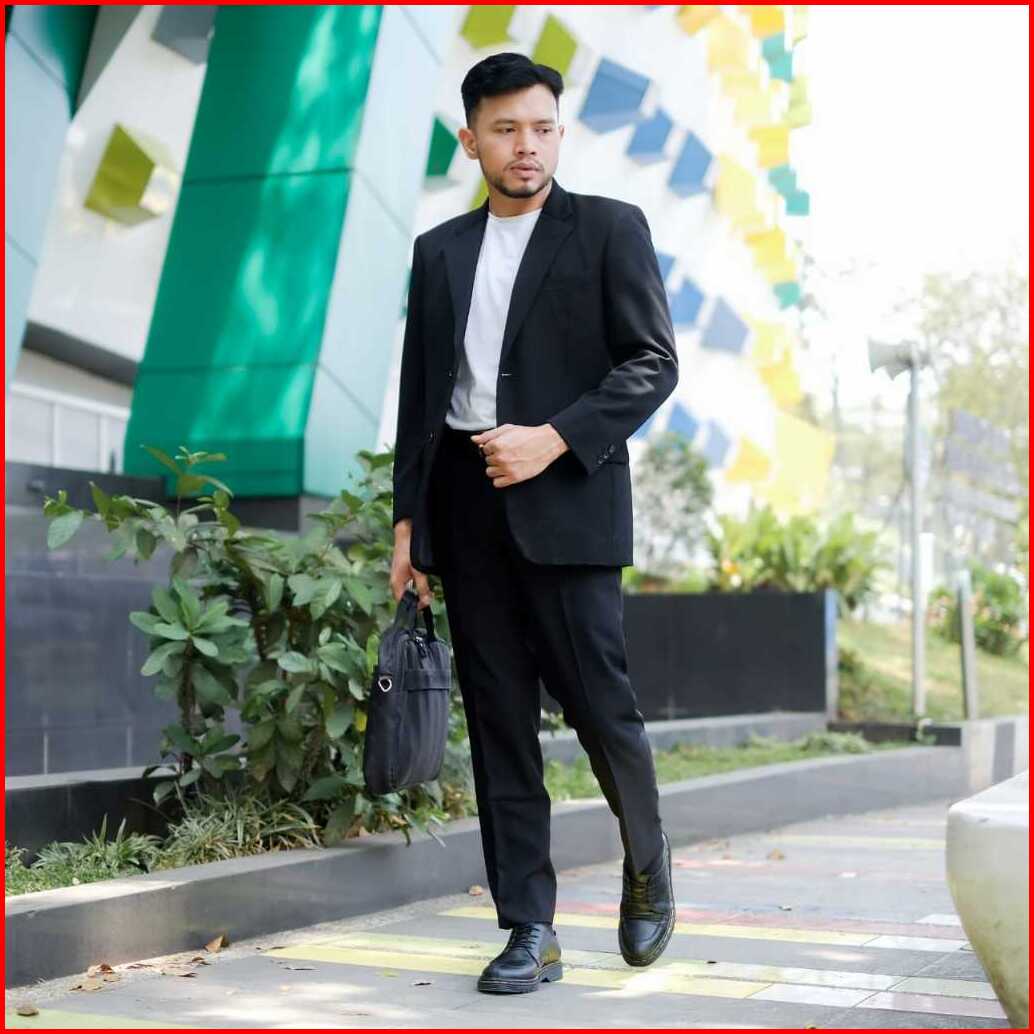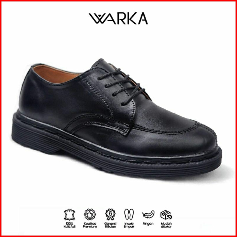 Warka Acstone Sepatu Formal Casual Pantofel Kerja Pria Kulit Asli Hitam