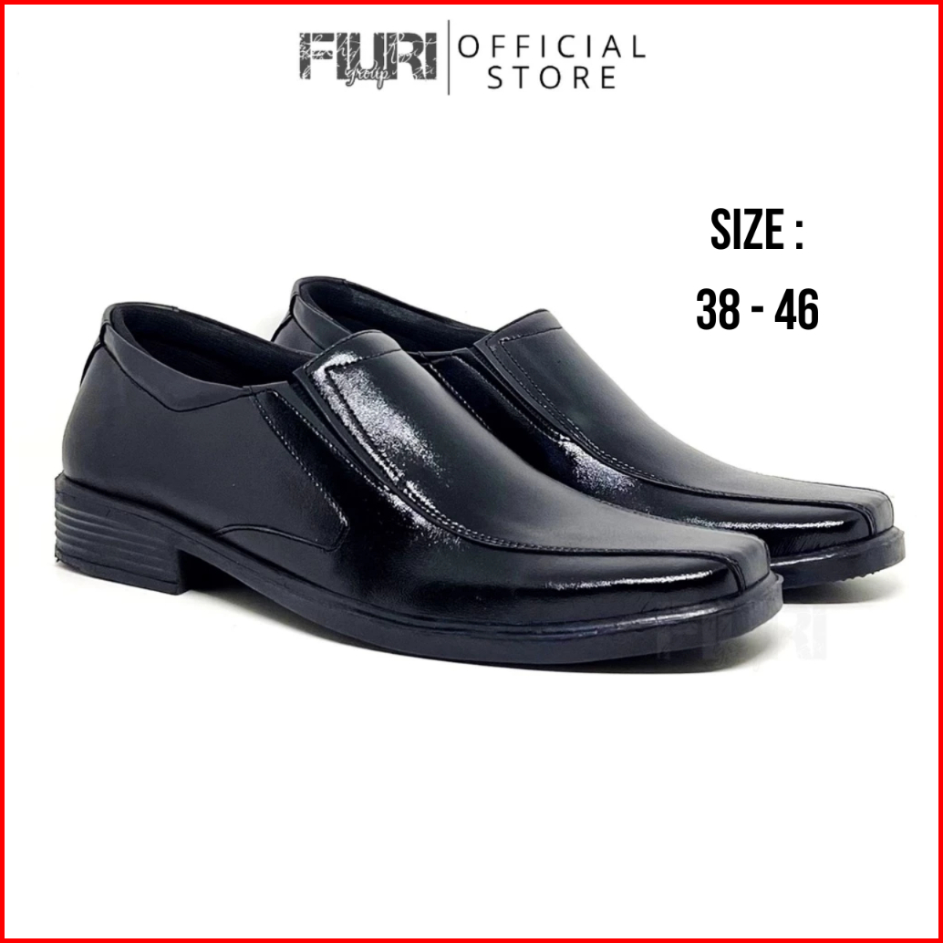 Fiuri - Satya 36-46 - Sepatu Pantofel Polos Pelatihan Kuliah Kerja Kantor Formal Pria - Hitam