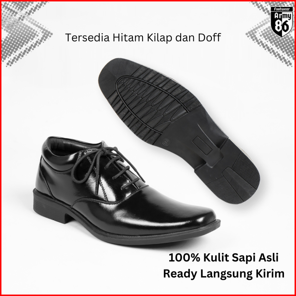 Army86 Sepatu Pdh Pantofel Pantovel Hitam Pria Satpam Kulit Asli Model Alfa