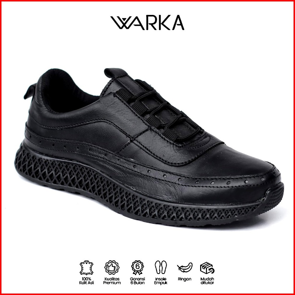 Warka Jarvis Sepatu Formal Casual Kulit Asli Kerja Kantor Pria - Hitam