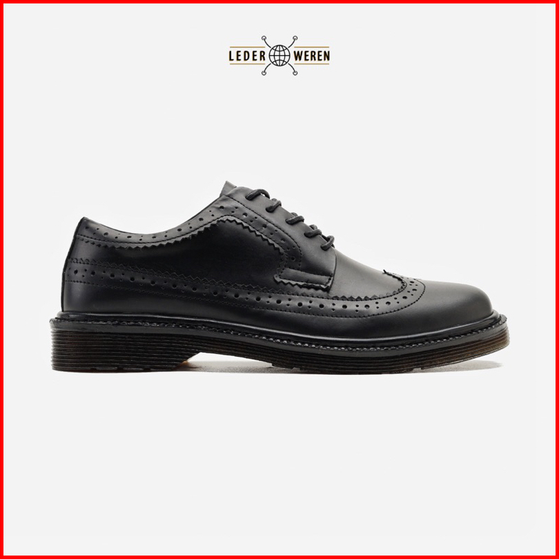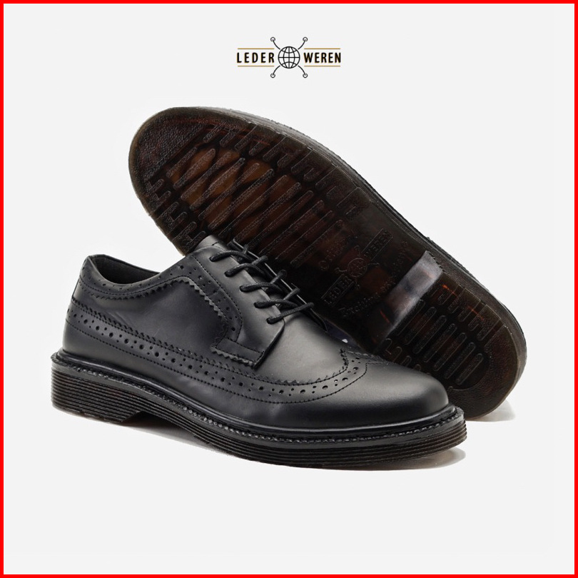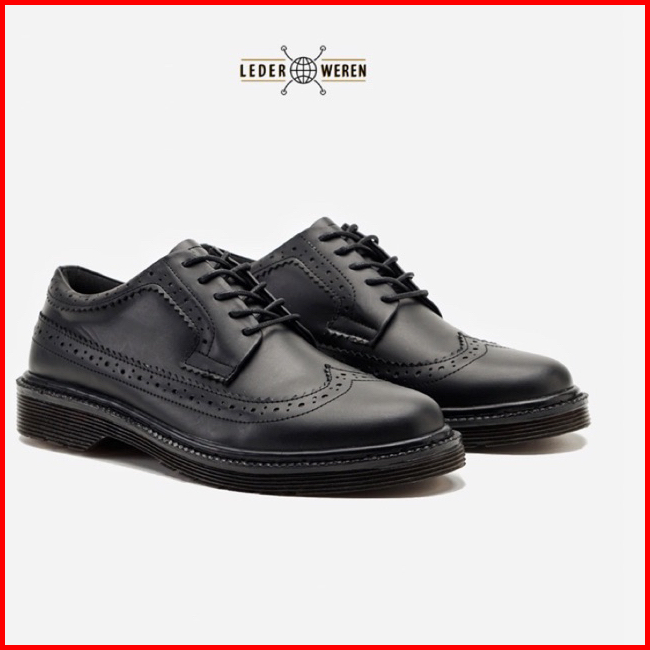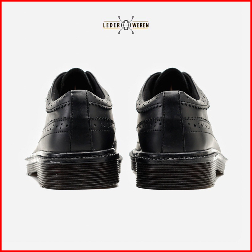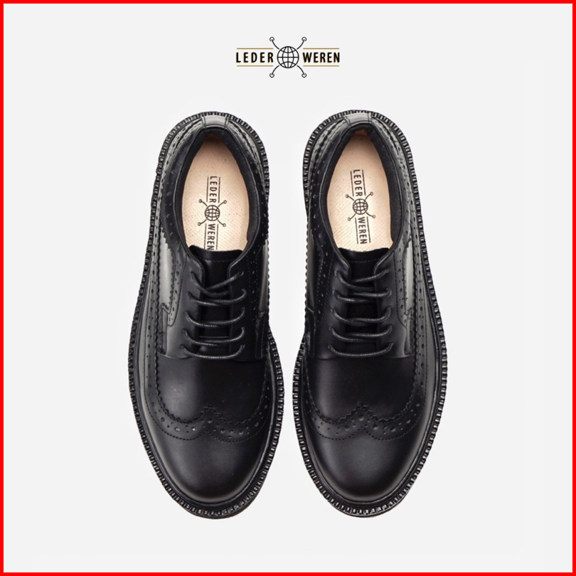 Lederweren Leder Wingtip Black Sepatu Pria Formal Pantofel Kulit