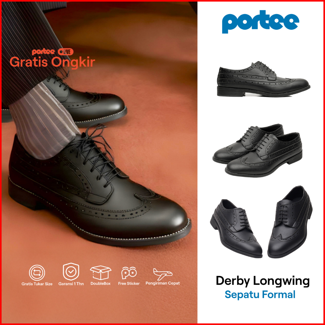 Sepatu Kerja Pria Portee Goods Derby Longwing Hitam