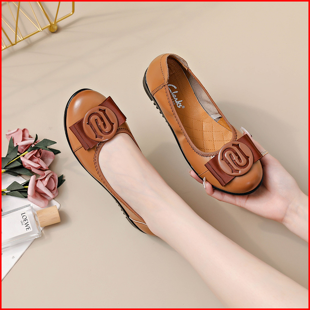 Sepatu Wanita New Sepatu Pita Woman Clarkts Flat Wanita Kulit Asli Sepatu Wanita Melati