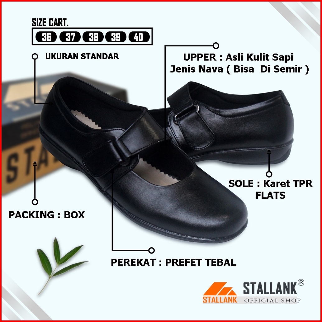 Stallank Sepatu Pantofel Paskibra Wanita Flats Asli Kulit