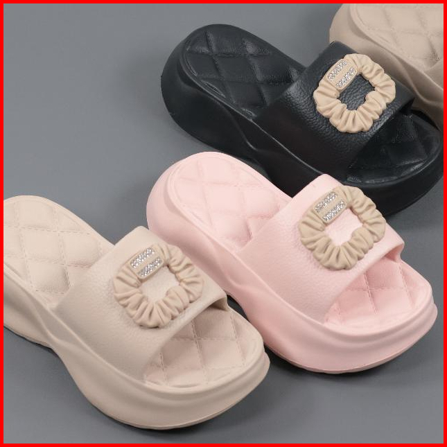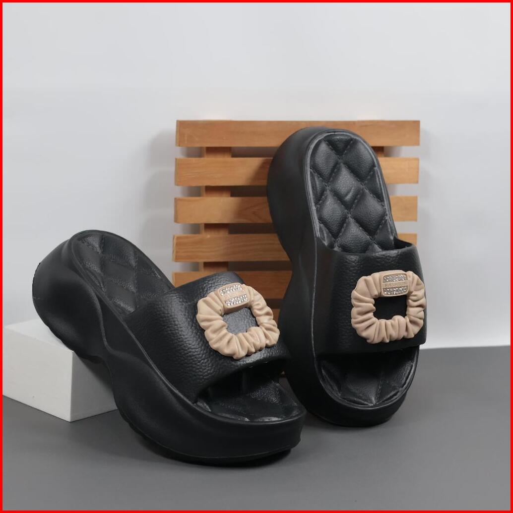 Sandal Selop Wanita Dewasa Eva Rubber - Sandal Selop Elegan Mewah Terlaris Sandal Anti Slip Hitam Karet Shoes Sendal 526