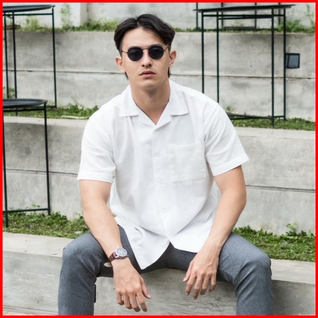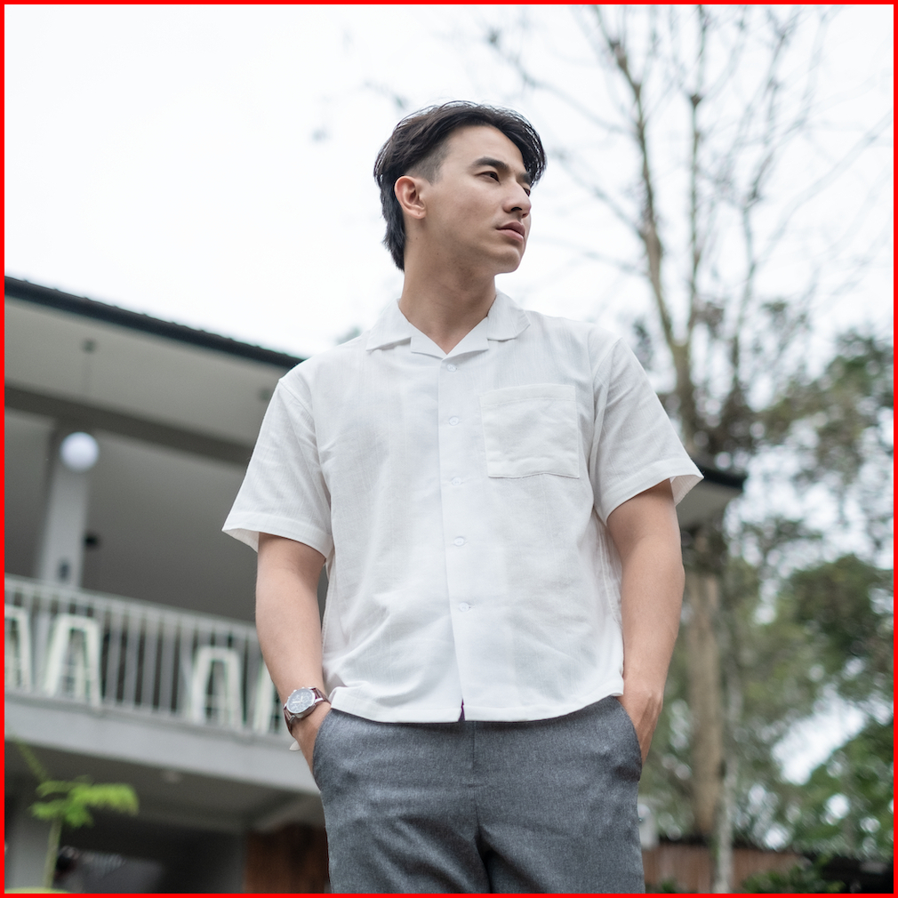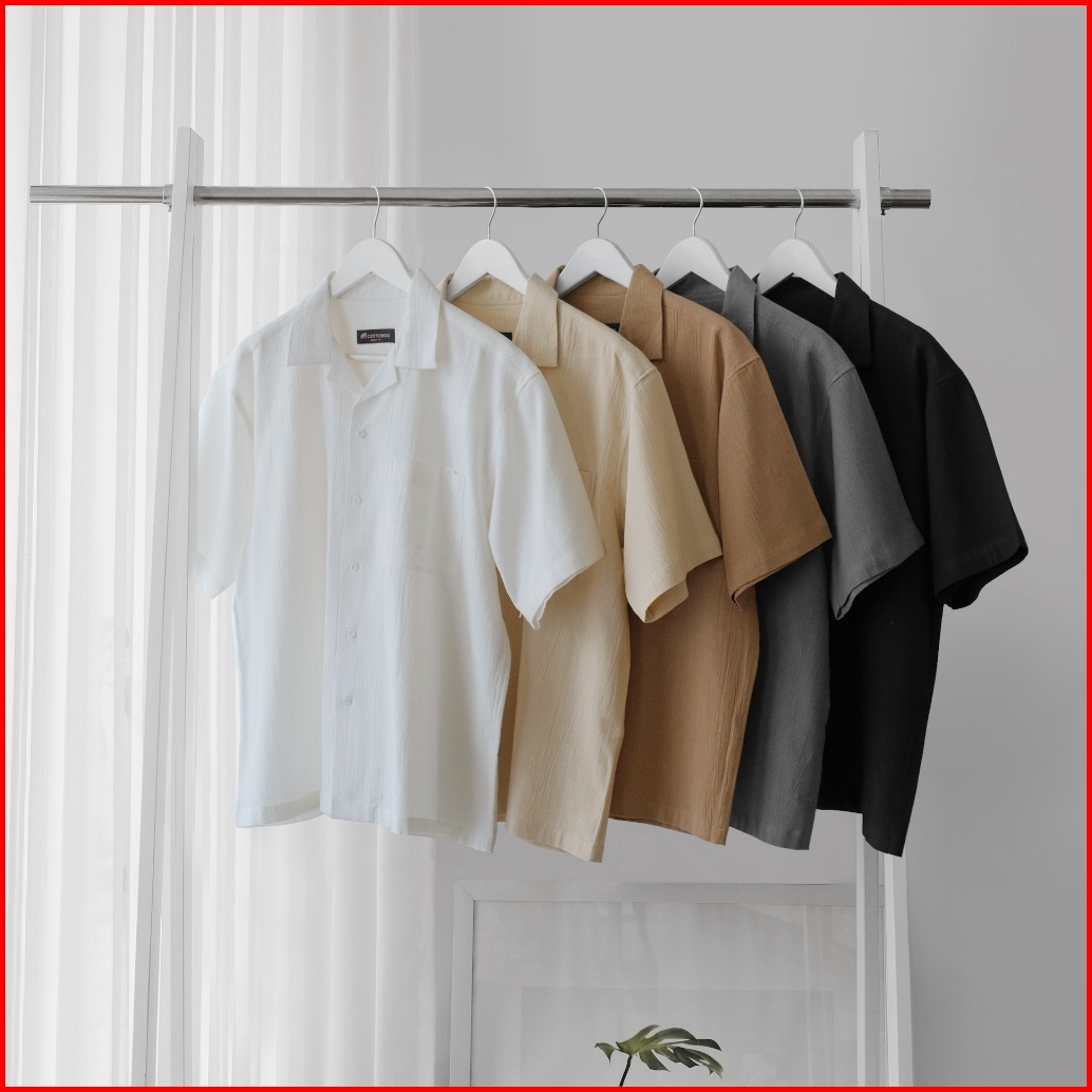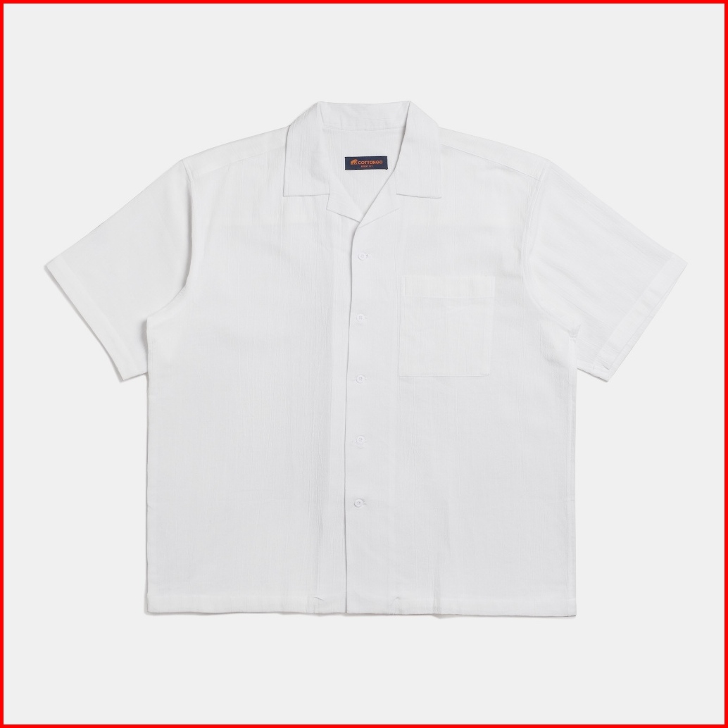 Cottongo Kemeja Open Collar Linen Cuban Bowling Oversized Shirt White