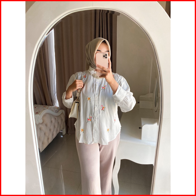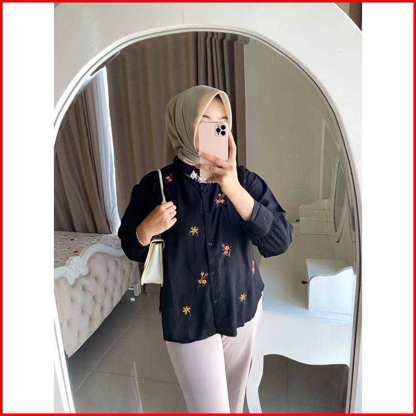 Dira Blouse - Kemeja Wanita Bordir Oversize - Blouse Bordir Wanita Rayon Twill Terbaru