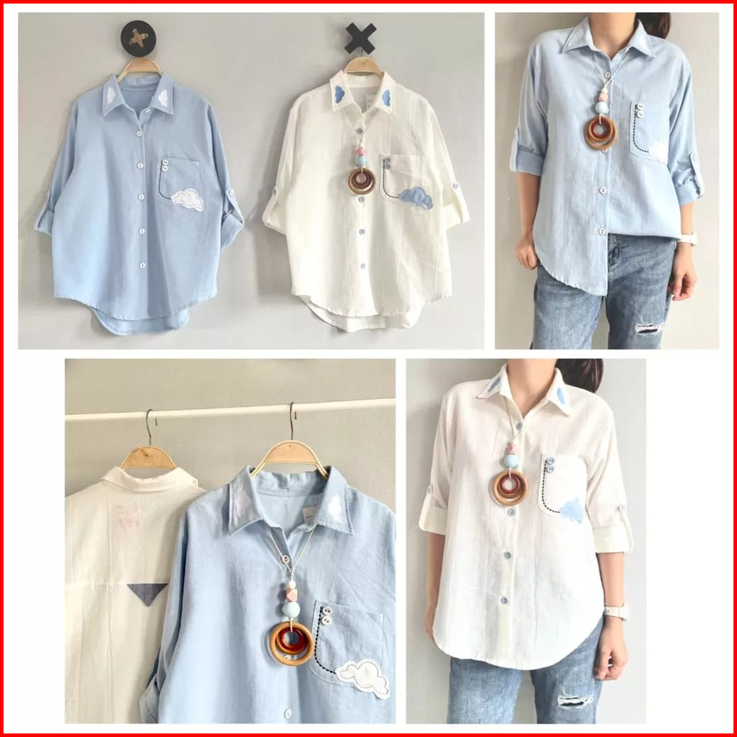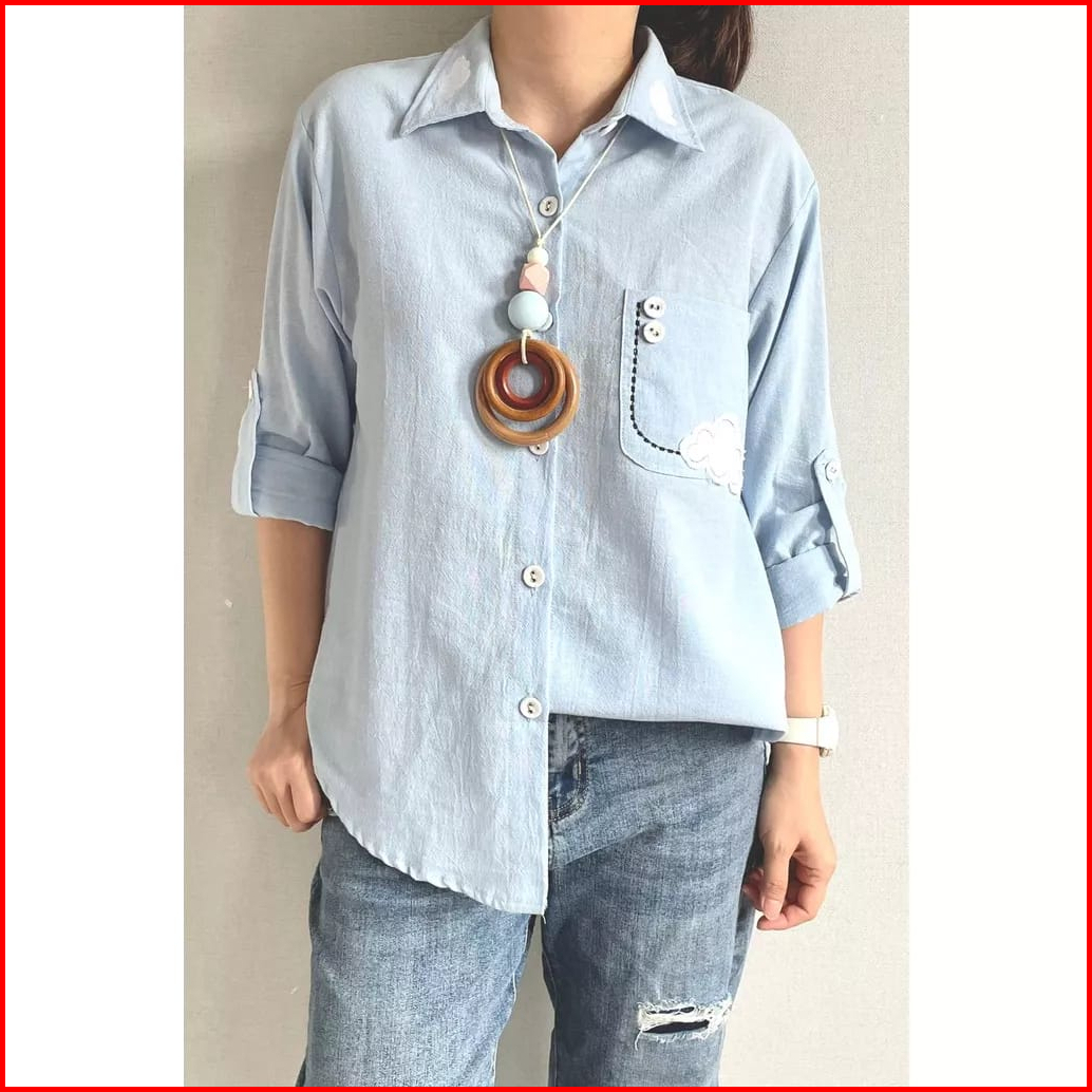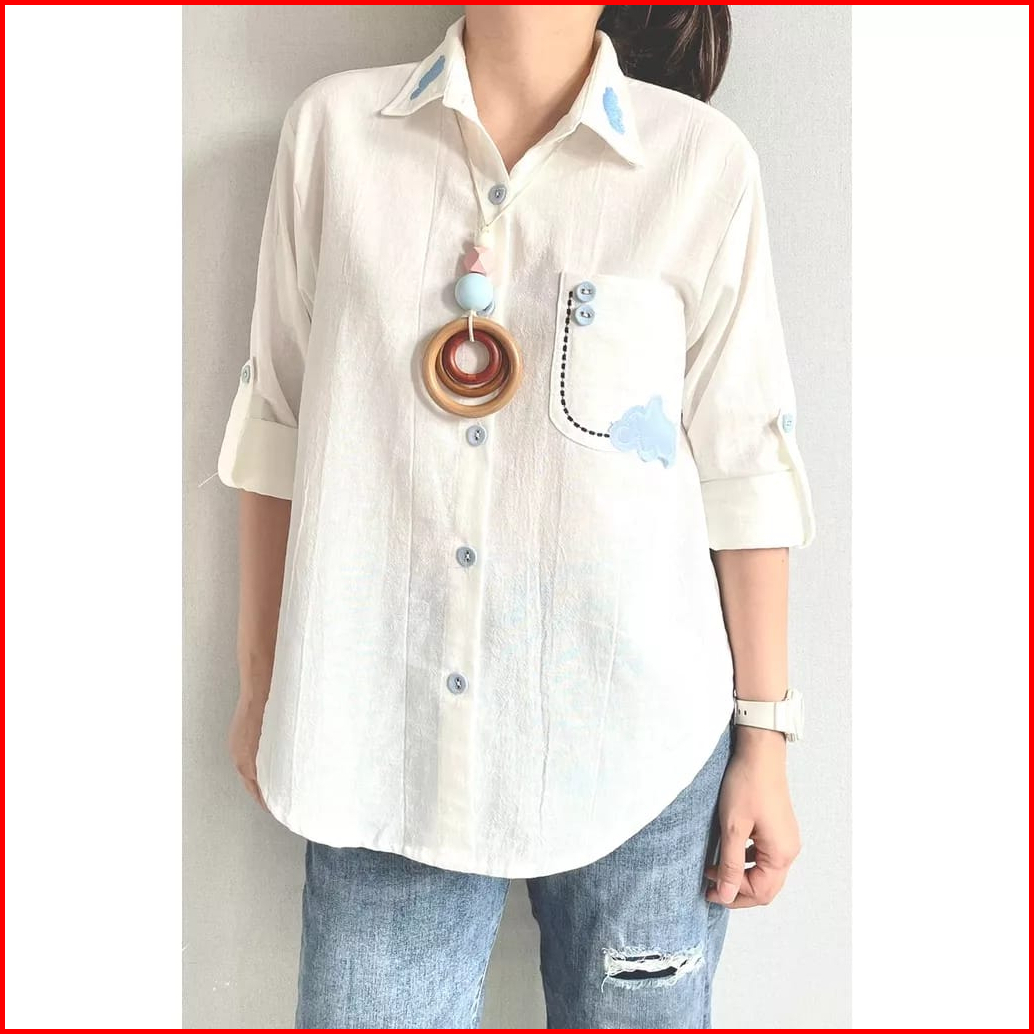 Nando Nando Kemeja Linen Premium Gambar Bordir Warna Cantik Skyblue Dan Putih Ukuran Big Size 6568