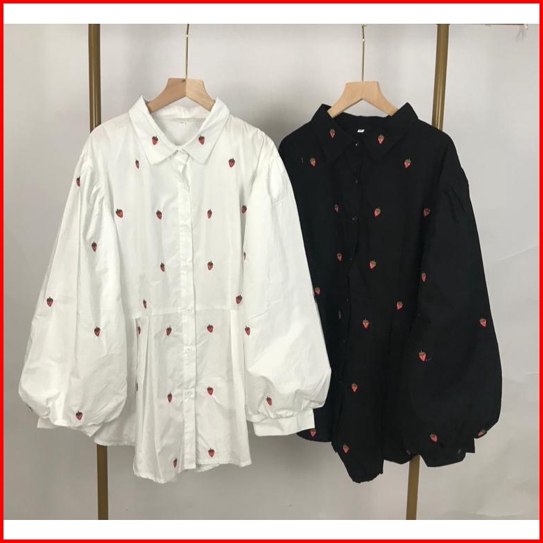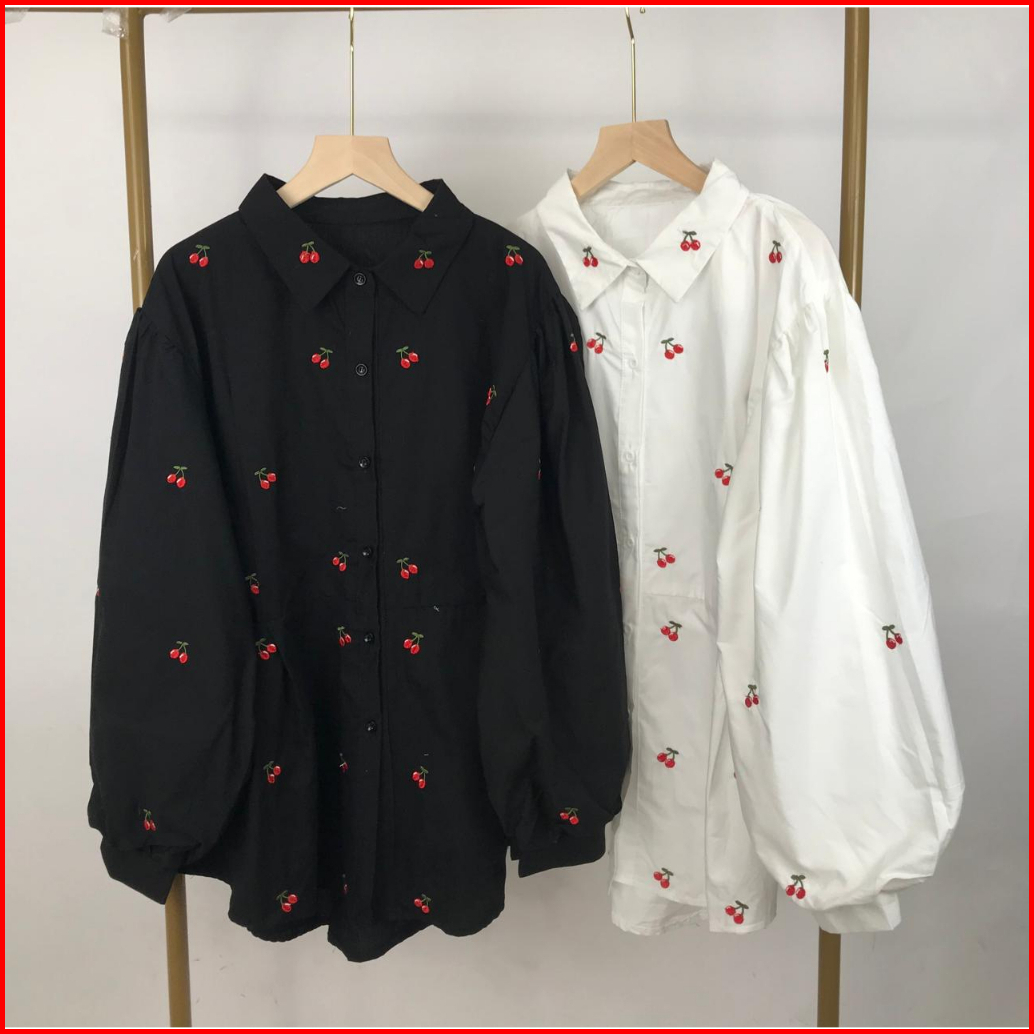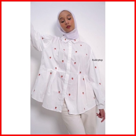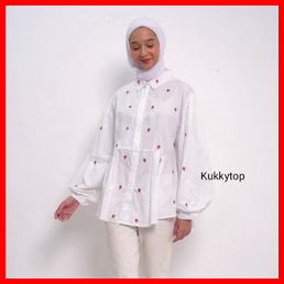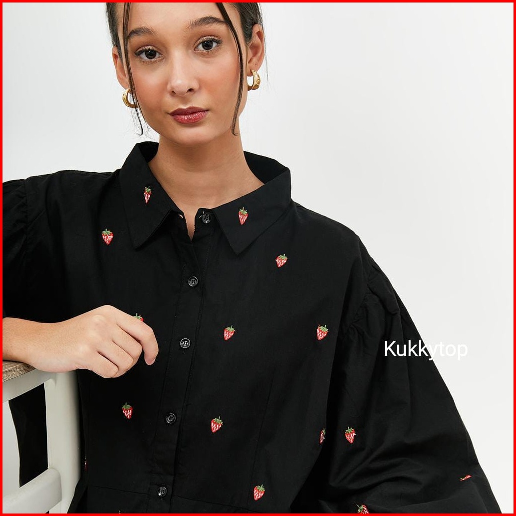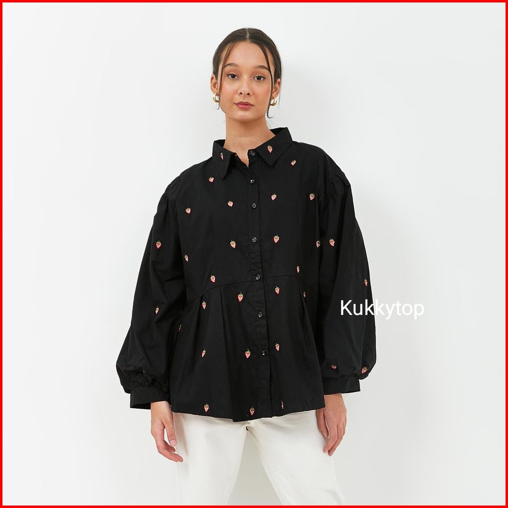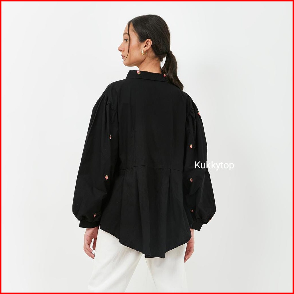 Kukky Top Kemeja Katun Bordir Oversize Wilona Shirt Premium Baju Atasan Wanita Tangan Balon Korean Style 12889