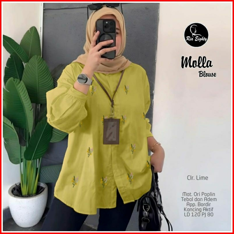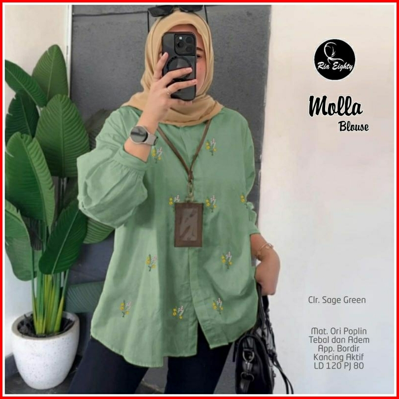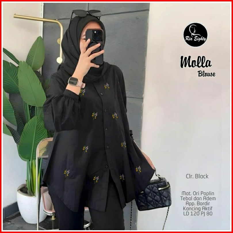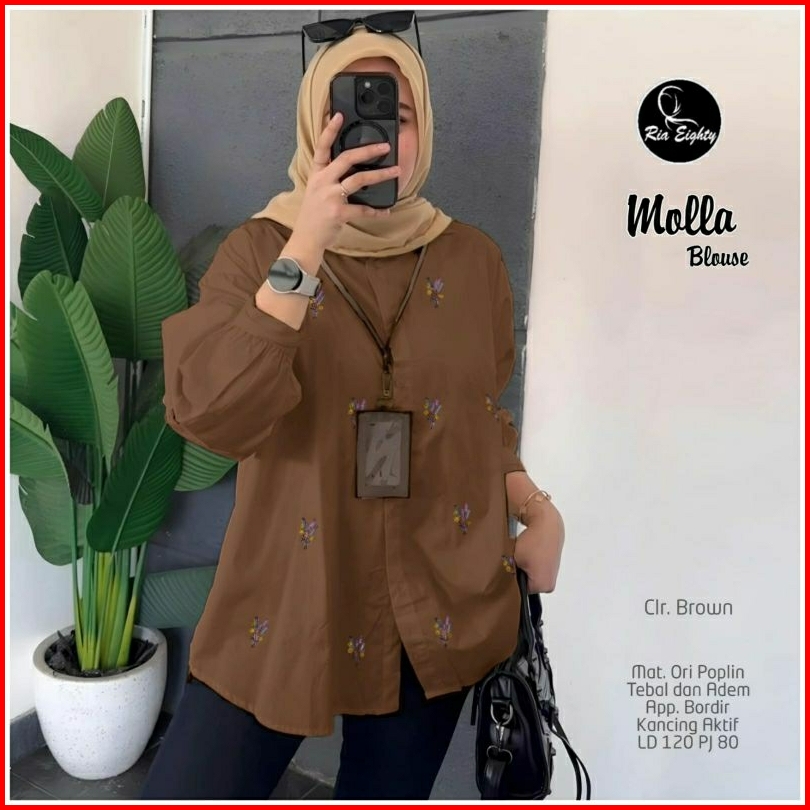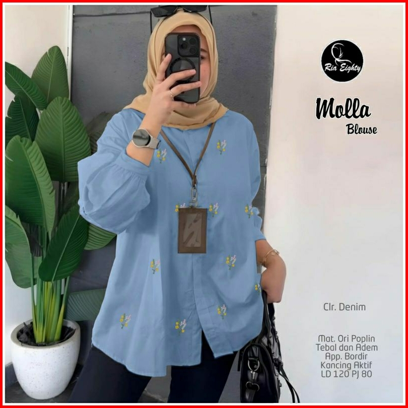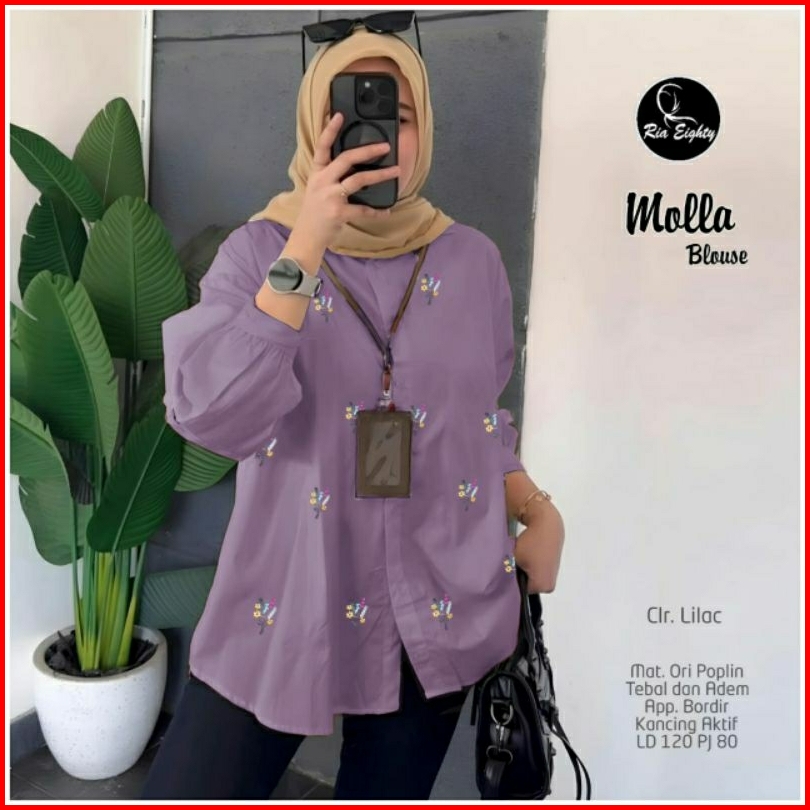 Molla Blouse Ld 120 Pb 80 Bahan Poplin Adem Tebal Kancing Aktif Busui Aplikasi Bordir