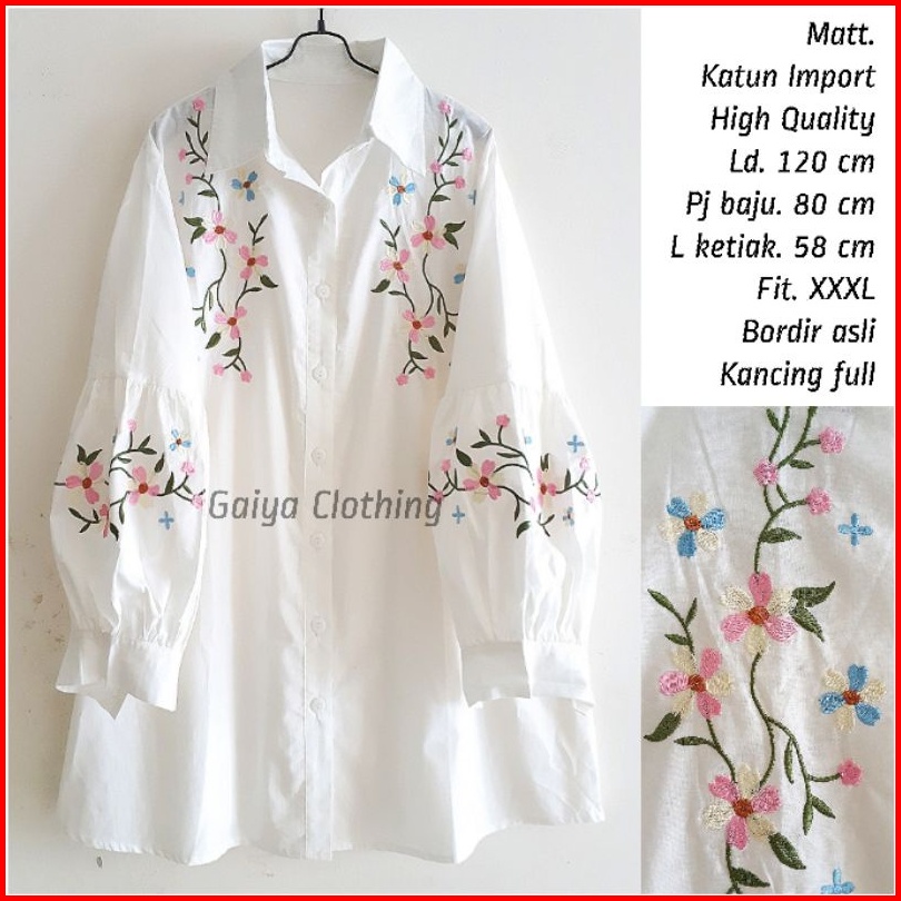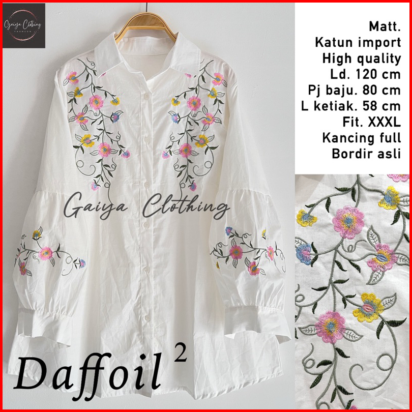 Atasan Jumbo Wanita Putih Blouse Bigsize Bordir Bunga Ld. 120 - Daffoil Blouse