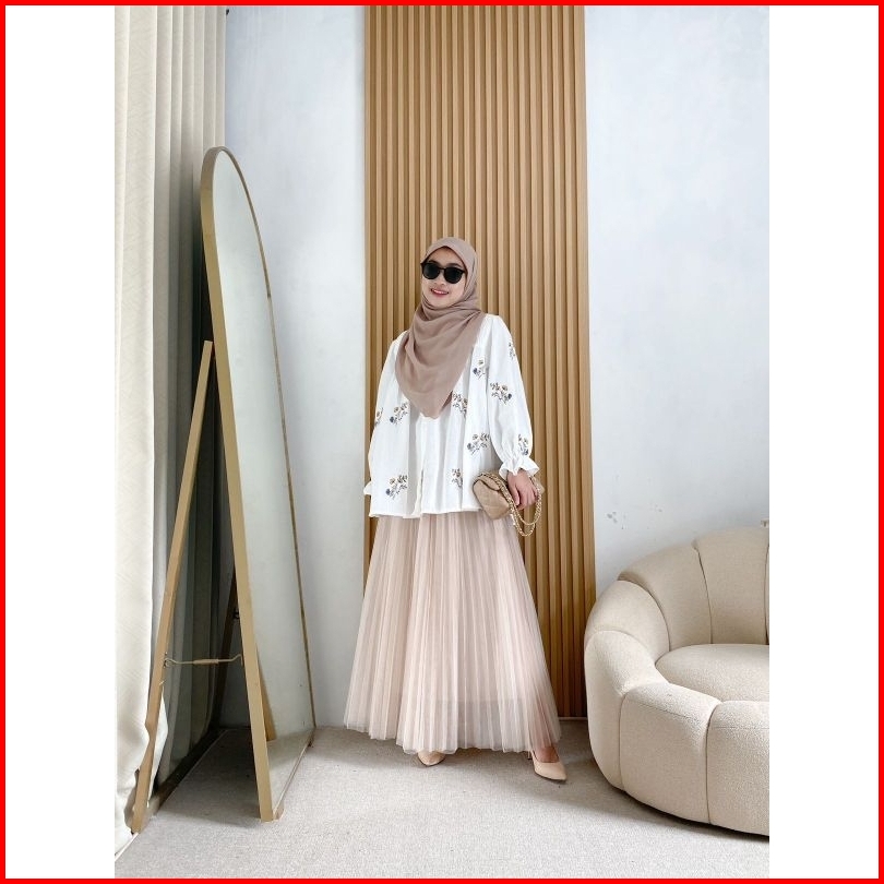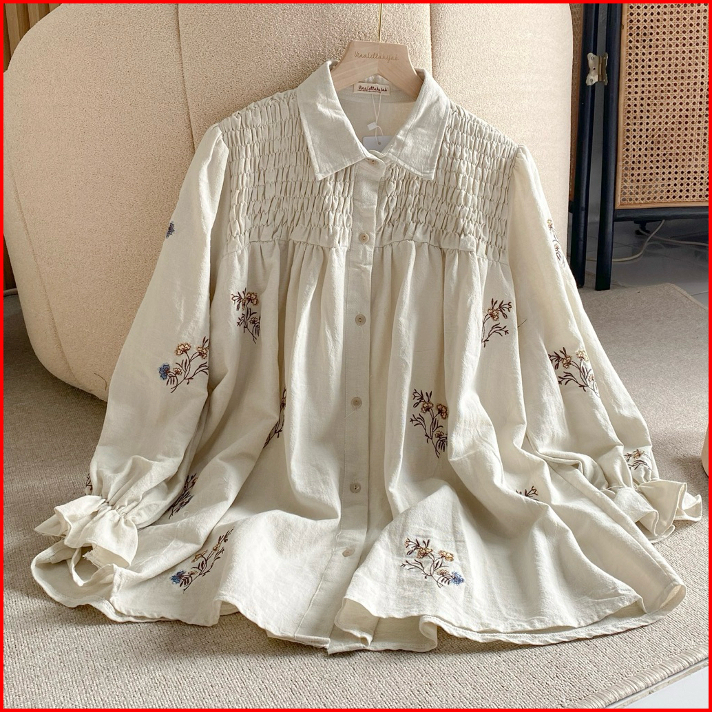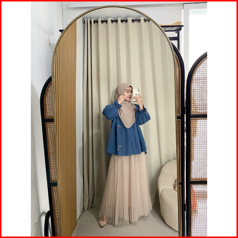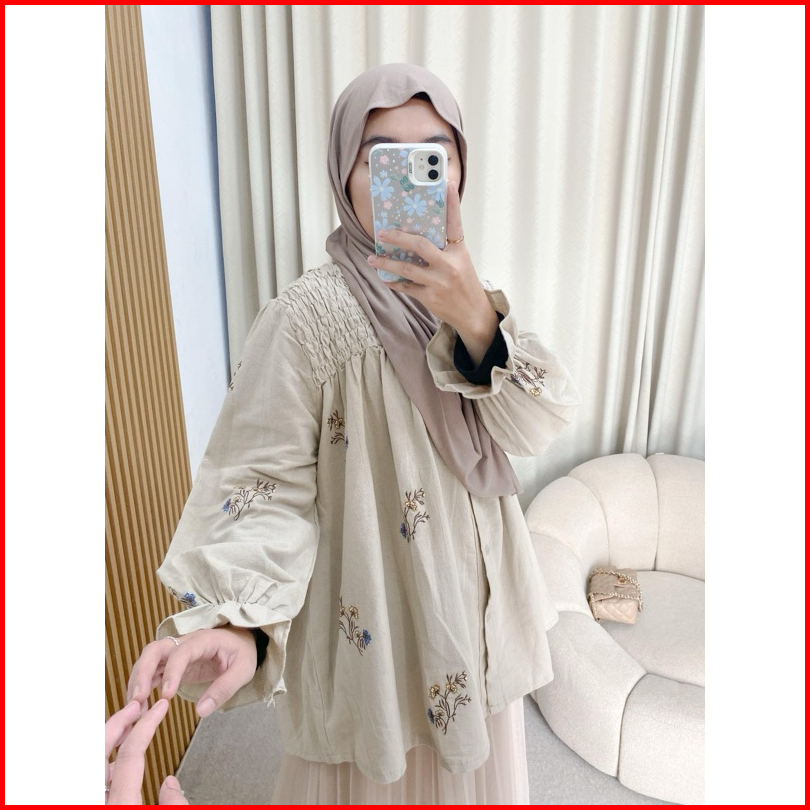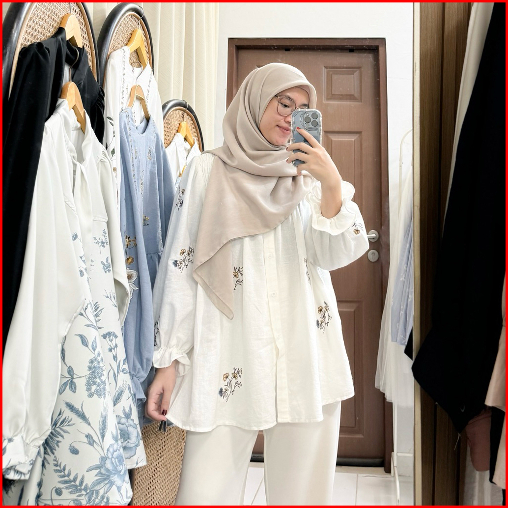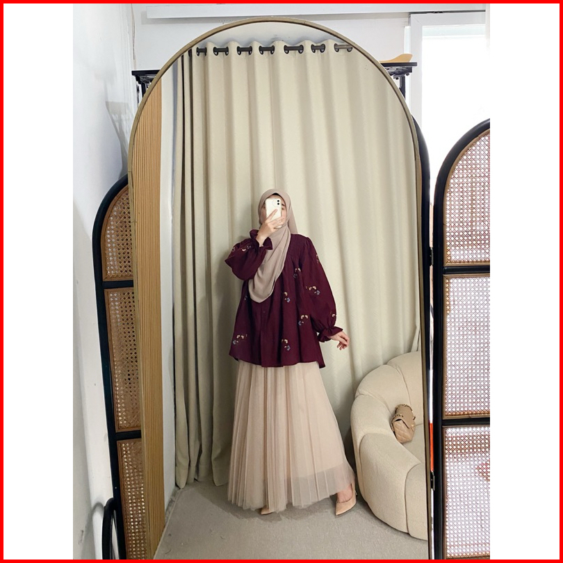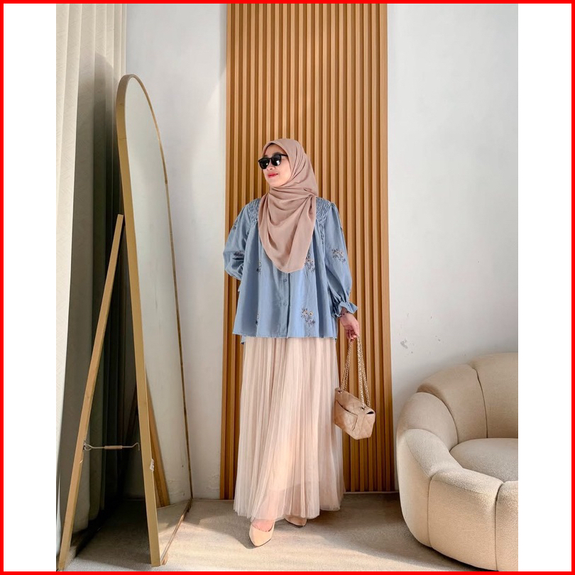 Anesha Embroidery Blouse Atasan Kemeja Kerja Kantor Kuliah Formal Casual Coklat Mocca Cream Denim Maroon Jumbo Xxl Busui