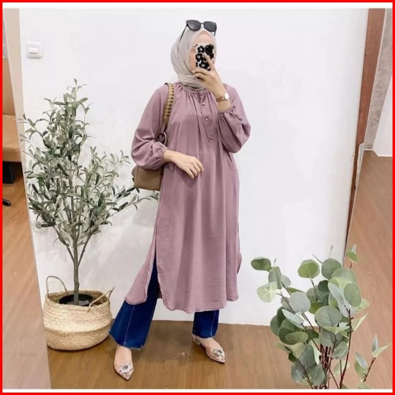 Zailan.id - Meisa Tunik - Tunik Crinkle - Atasan Simple Muslim Wanita - Tunik Wanita Terbaru 2025