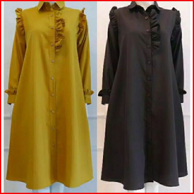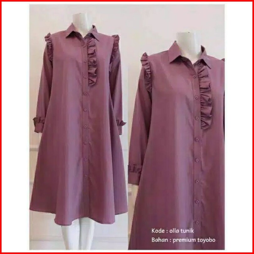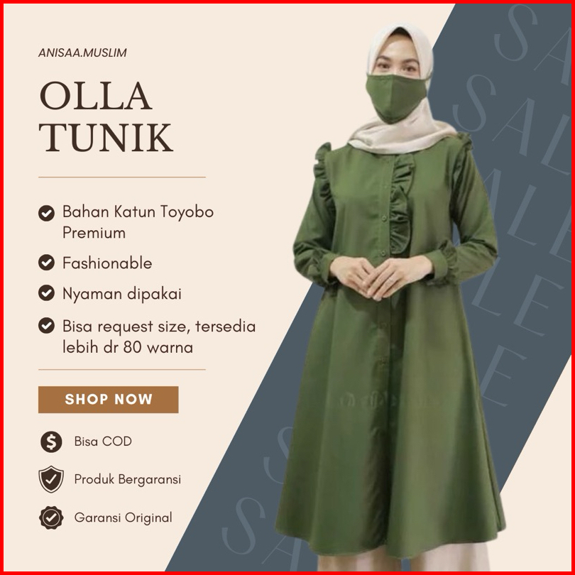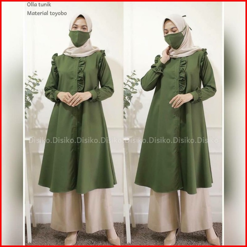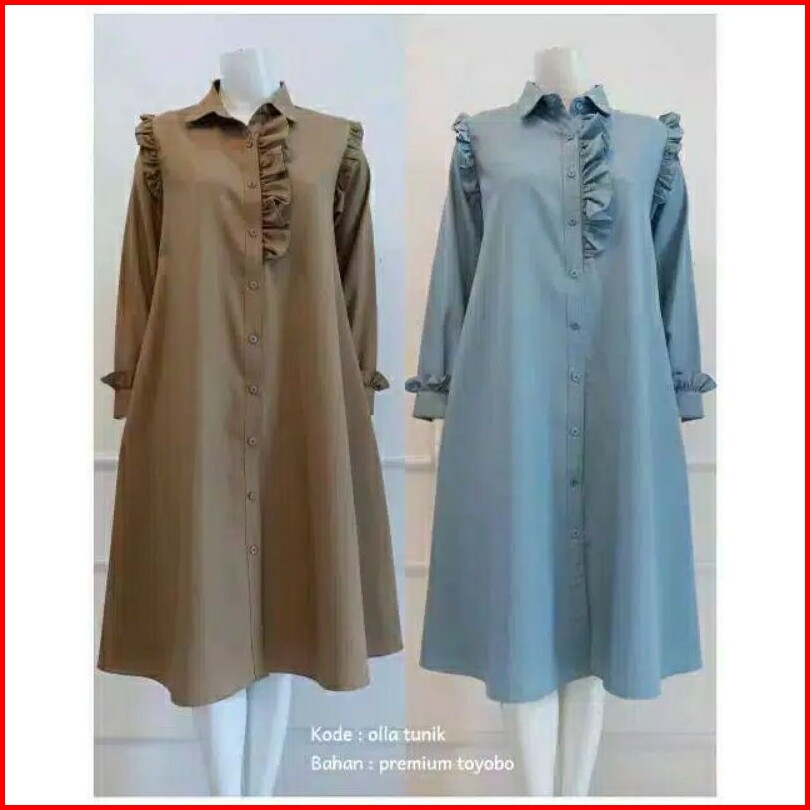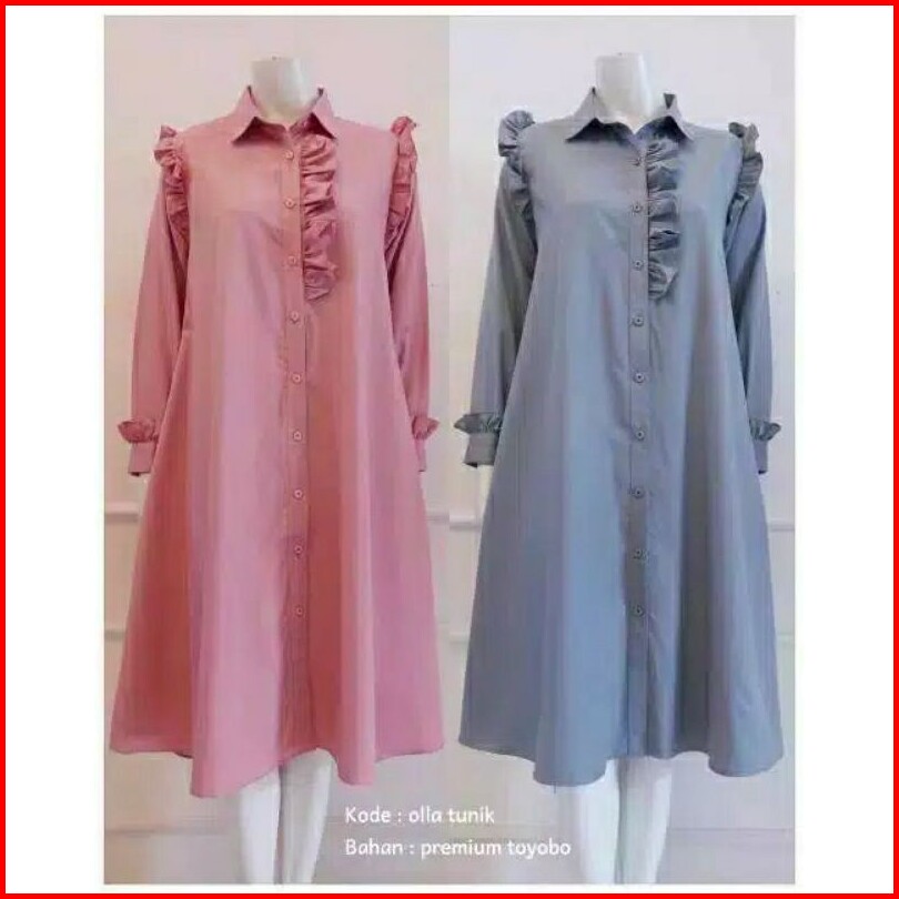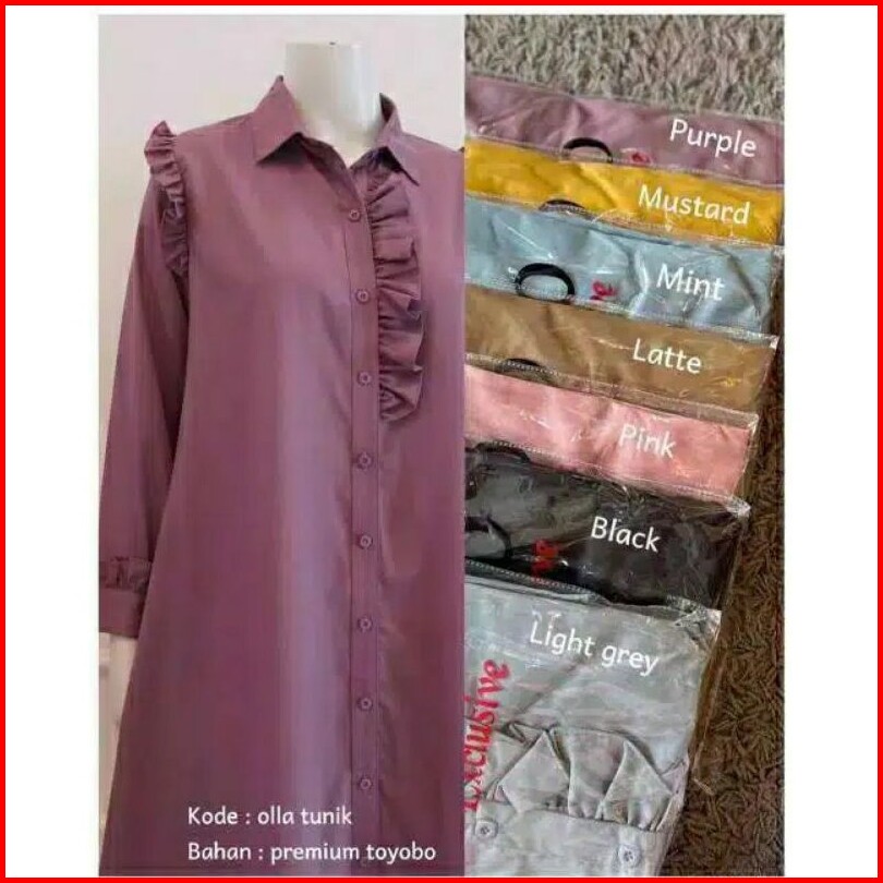 Baju Atasan Wanita Terbaru Long Tunik Panjang Olla Tunic Katun Toyobo Premium Putih Hitam Kekinian