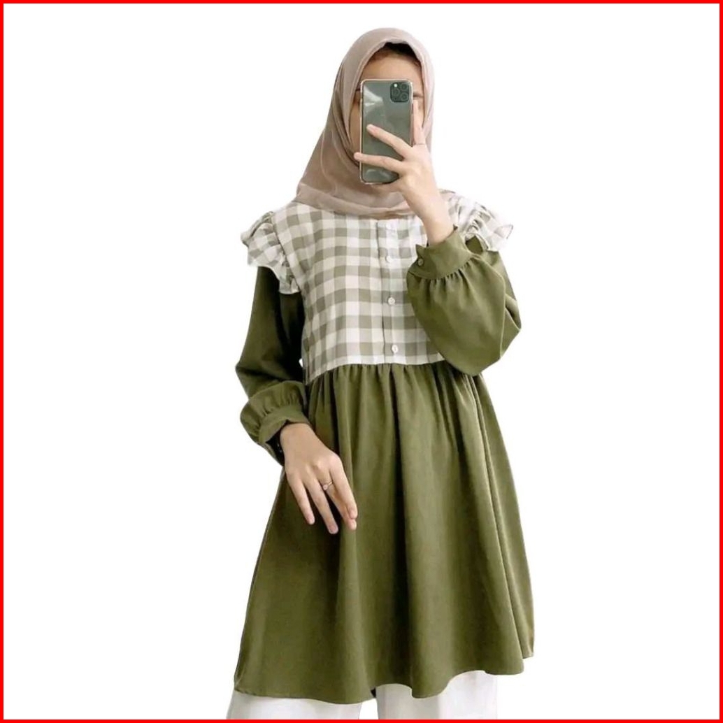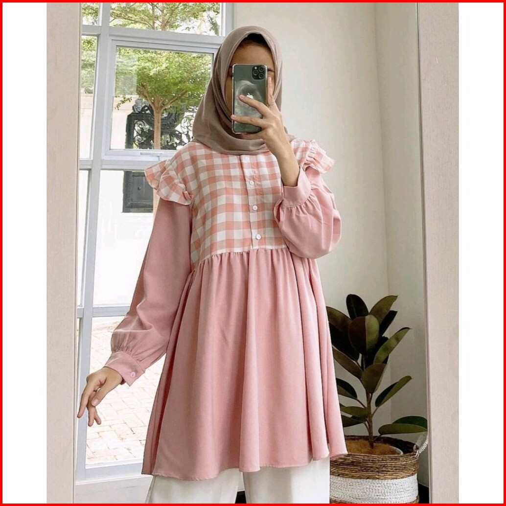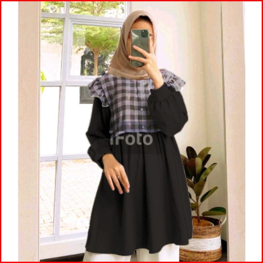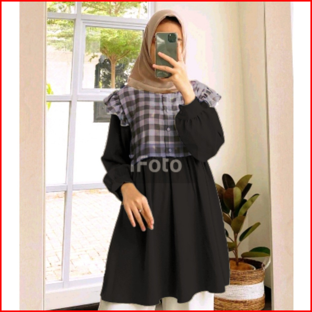 Isma Tunik M-l-xl Crinkle Air Flow Full Kancing Fashion Muslim Kekinian Tunik Terbaru Tunik Wanita Terlaris