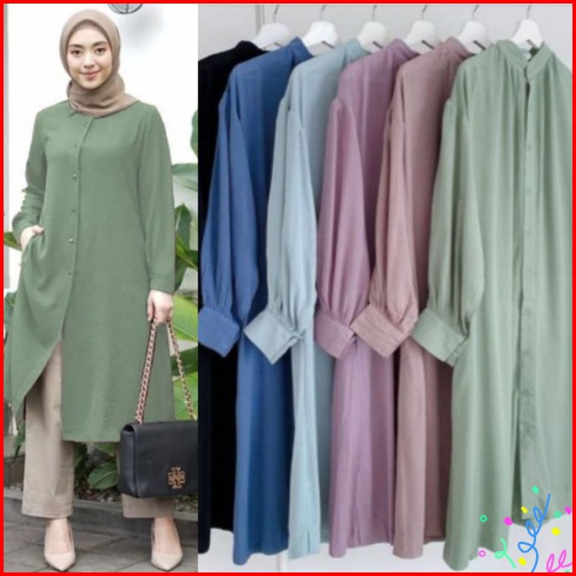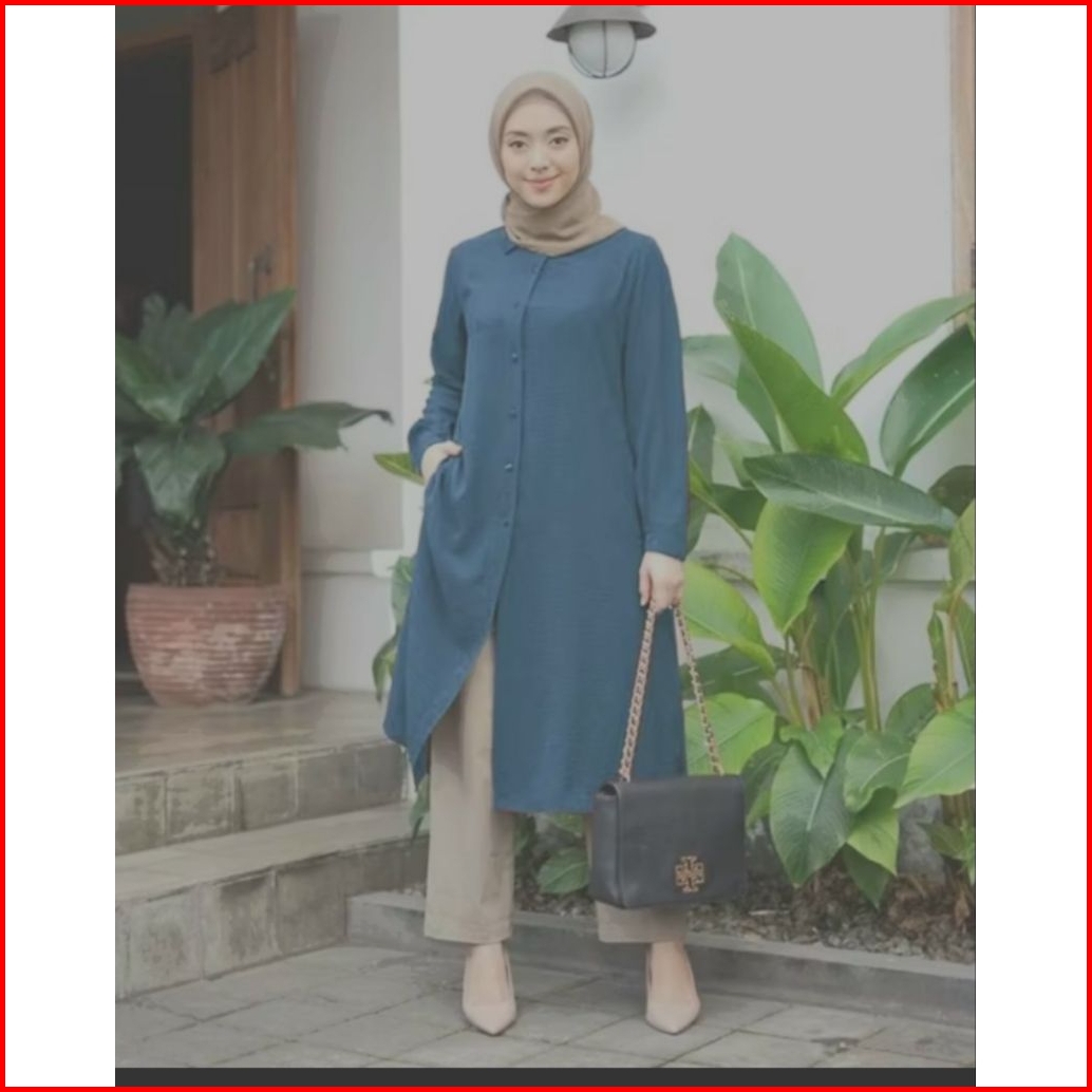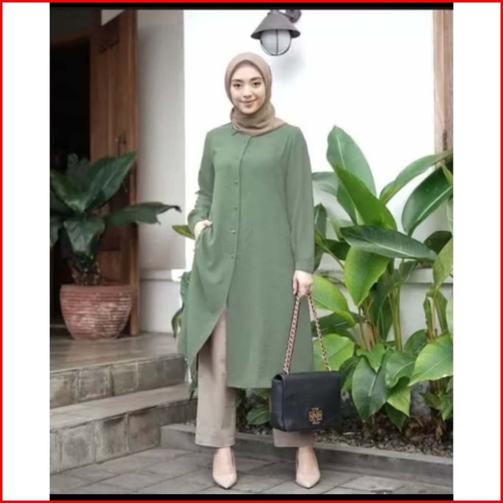 Terbaru Korean Tunik Jumbo Busui Ful Kancing Crinkle Airflow Tunik Long Oversize Selebgram