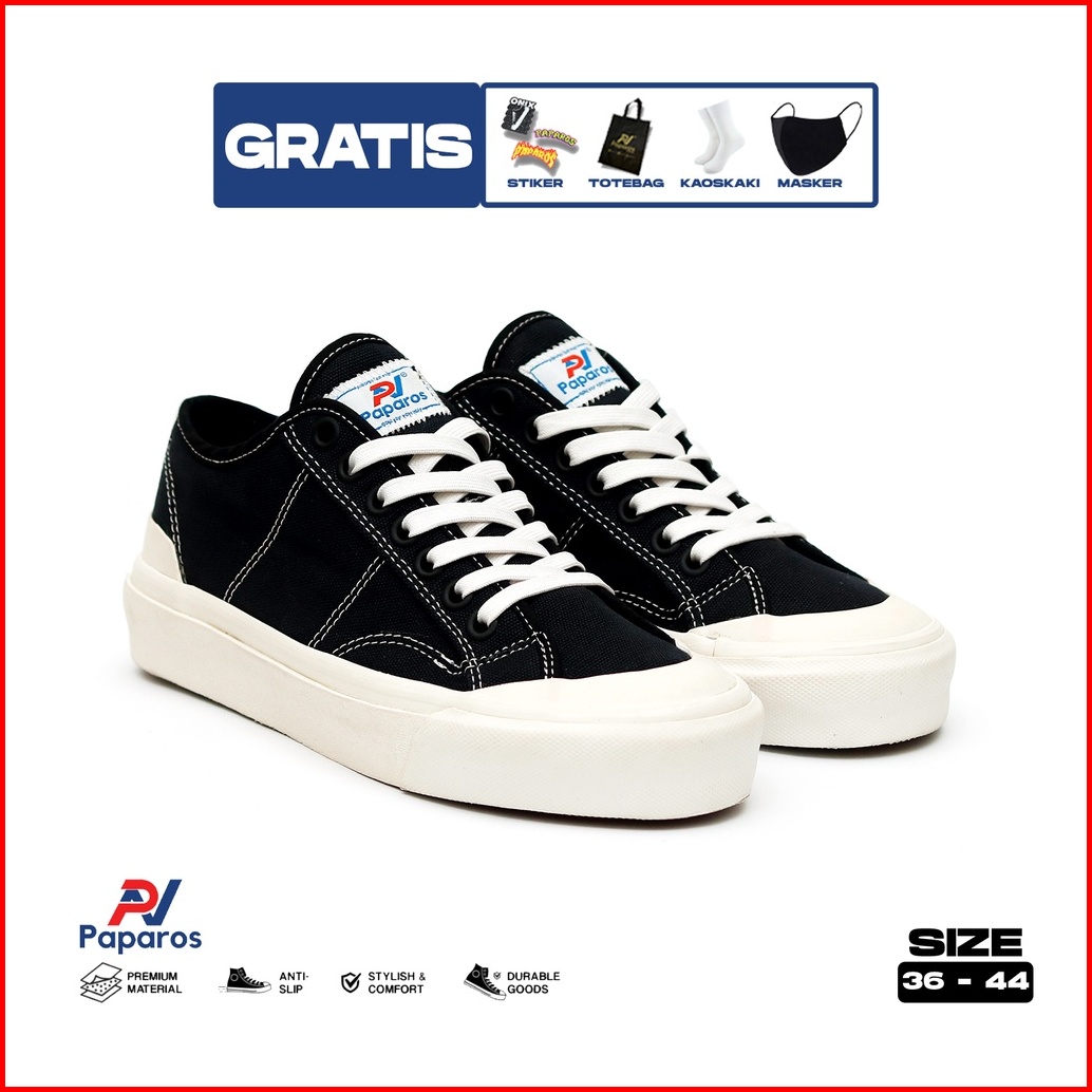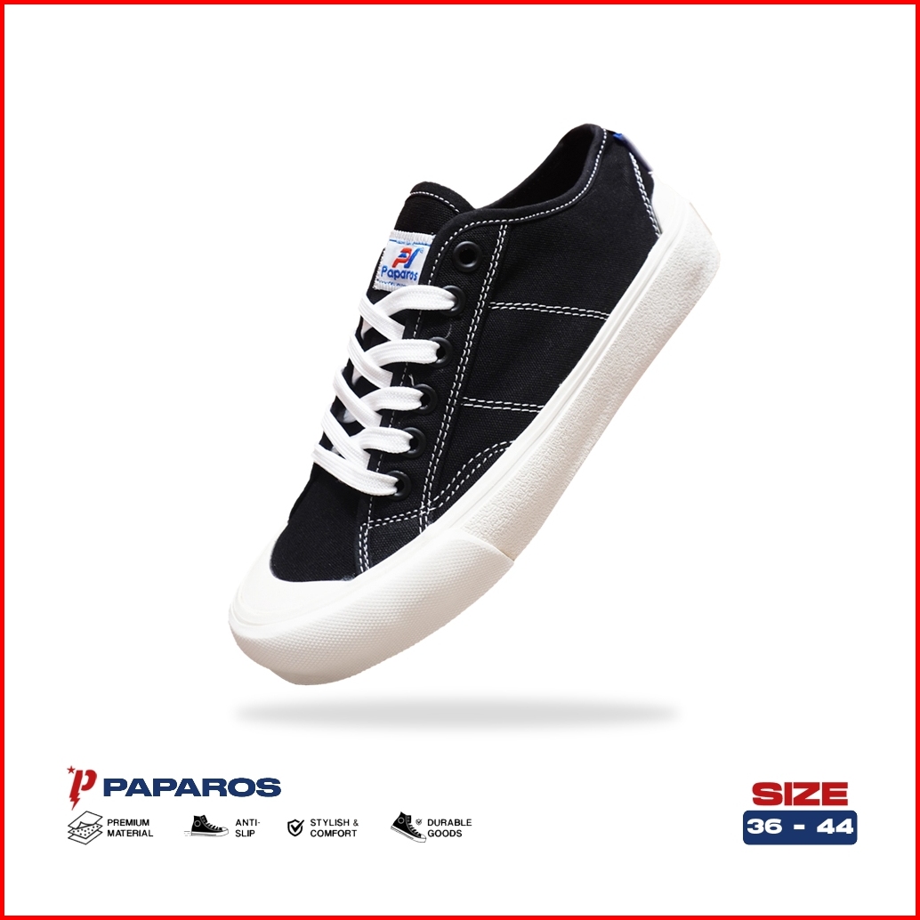 Paparos - Sepatu Sneakers Unisex Pria Wanita Onix Low Series Black White