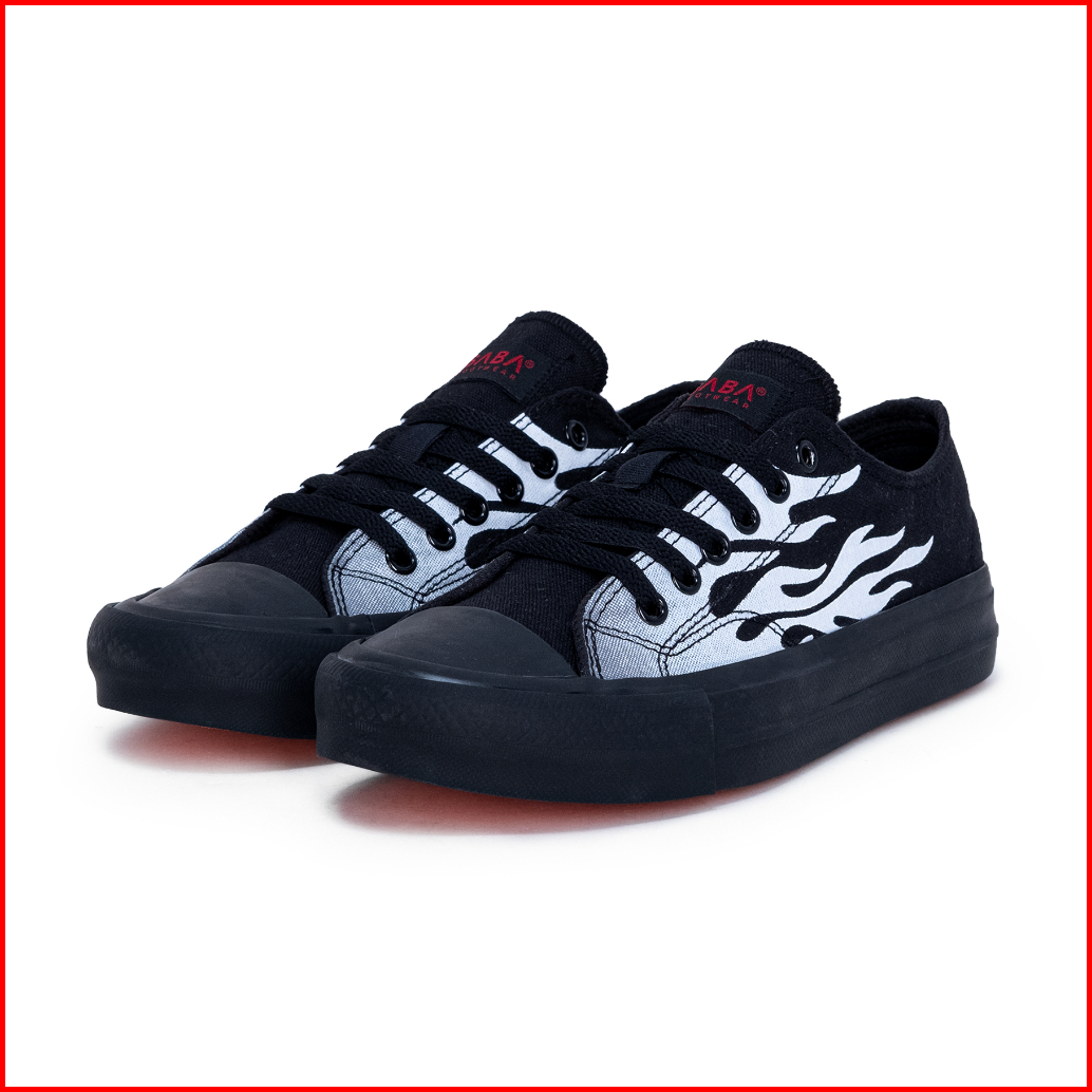 Saba Vintage Low White Flame All Black - Sepatu Sneakers Casual Pria Wanita Original 100 1wf 02