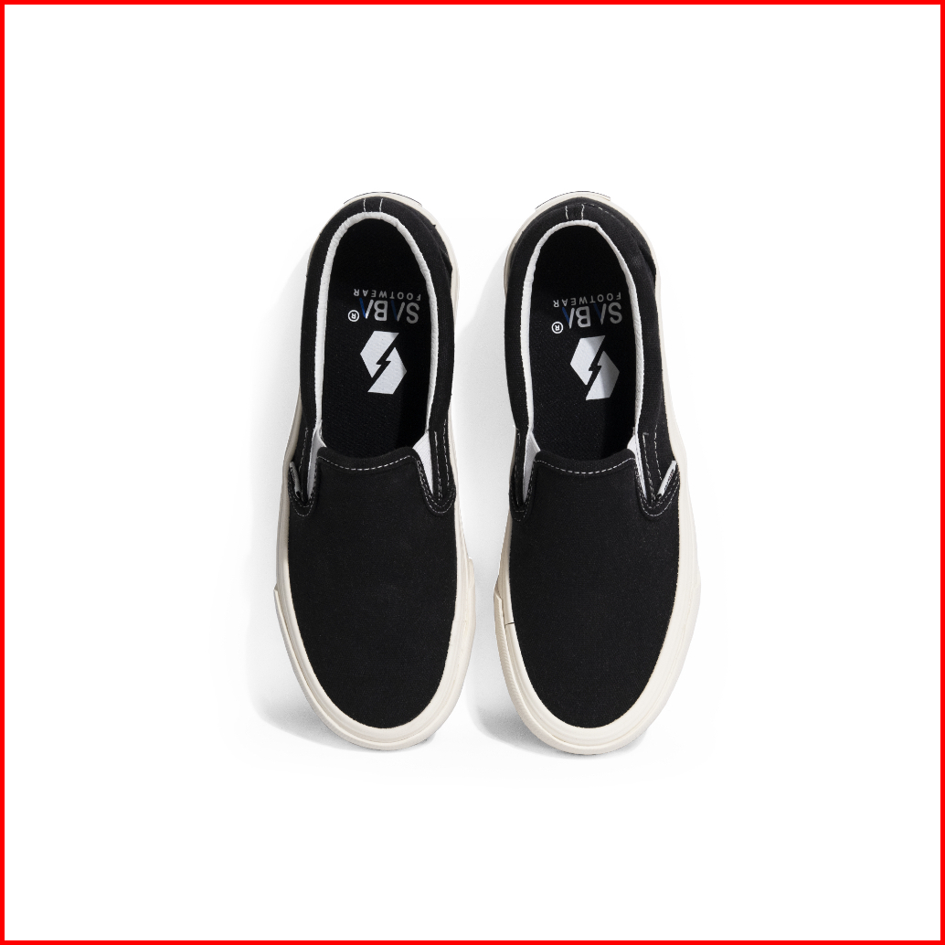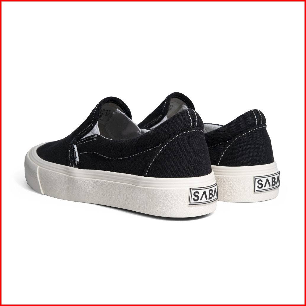 Saba Vintage Slip On Black White Retro - Sepatu Sneakers Casual Pria Wanita Original 100 Vtg 01
