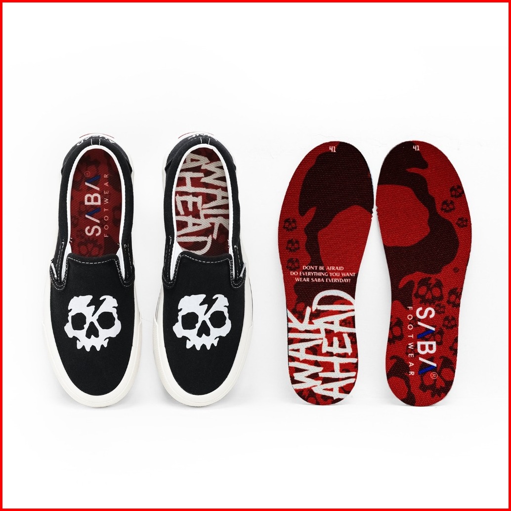 Saba Slip On Skull Black White - Sepatu Sneakers Casual Pria Wanita Original 100 Sk 01