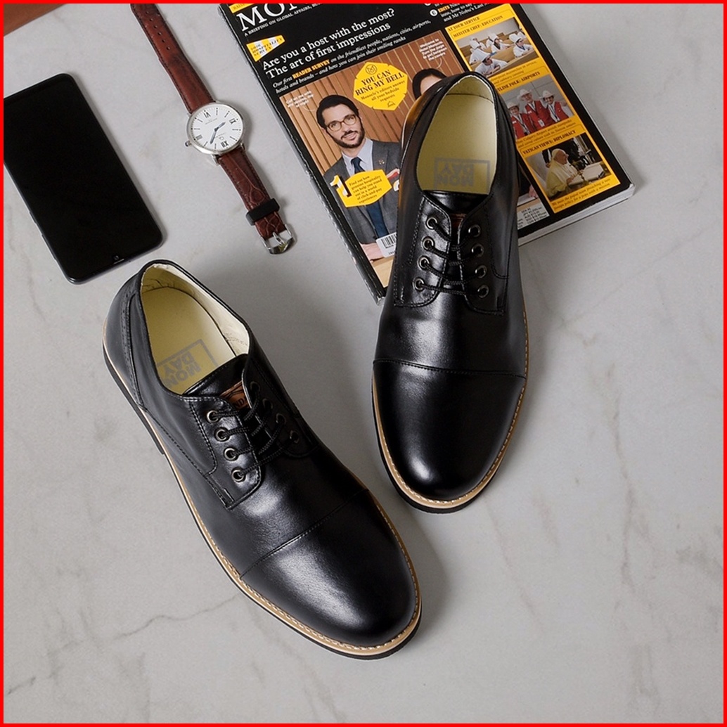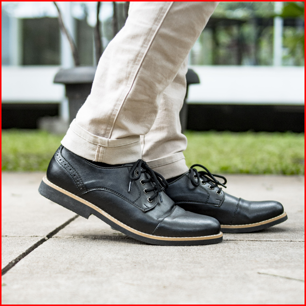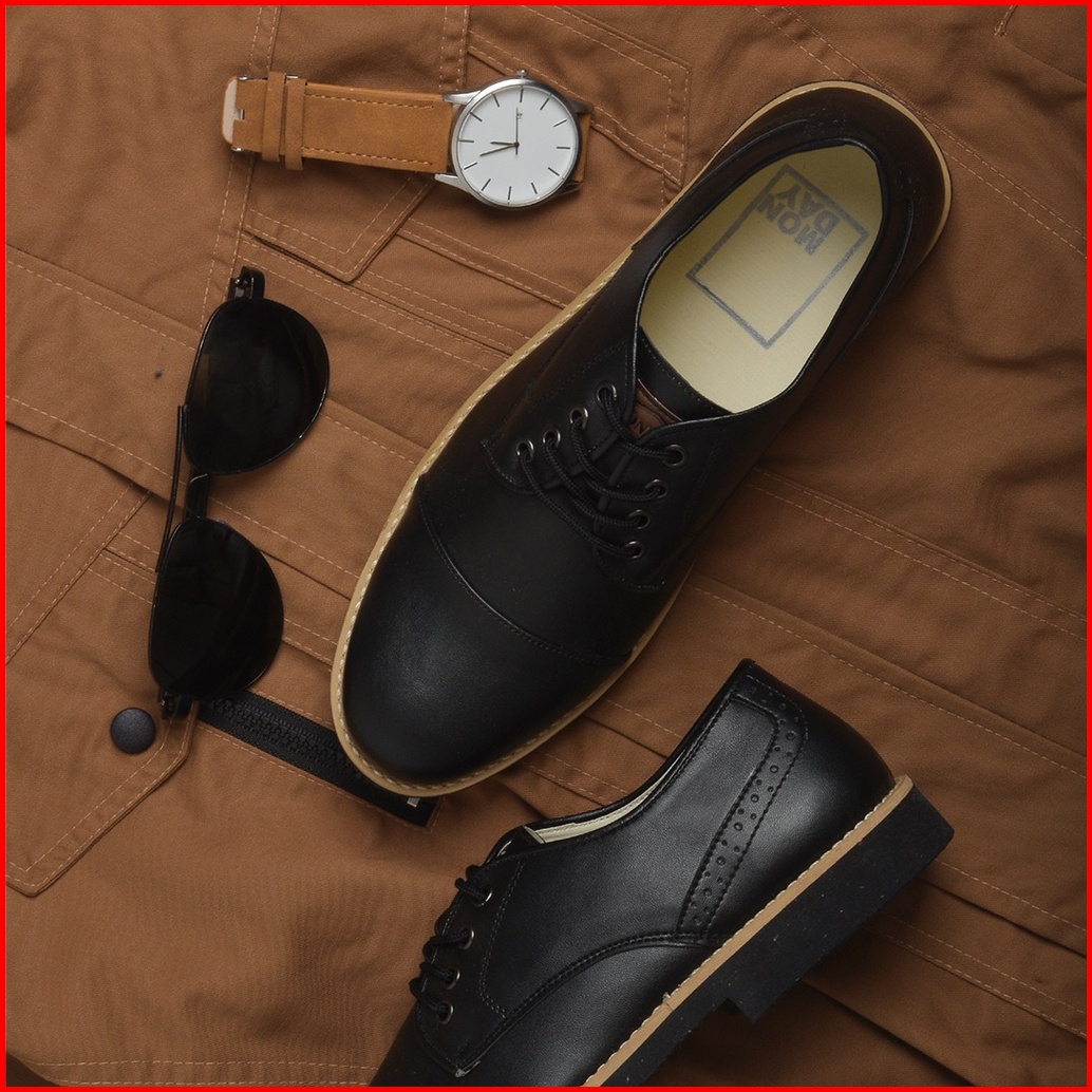 Wajendra X Mndy - Hawkin Black - Sepatu Kulit Pantofel Anti Slip Ringan Durable Anti Bau