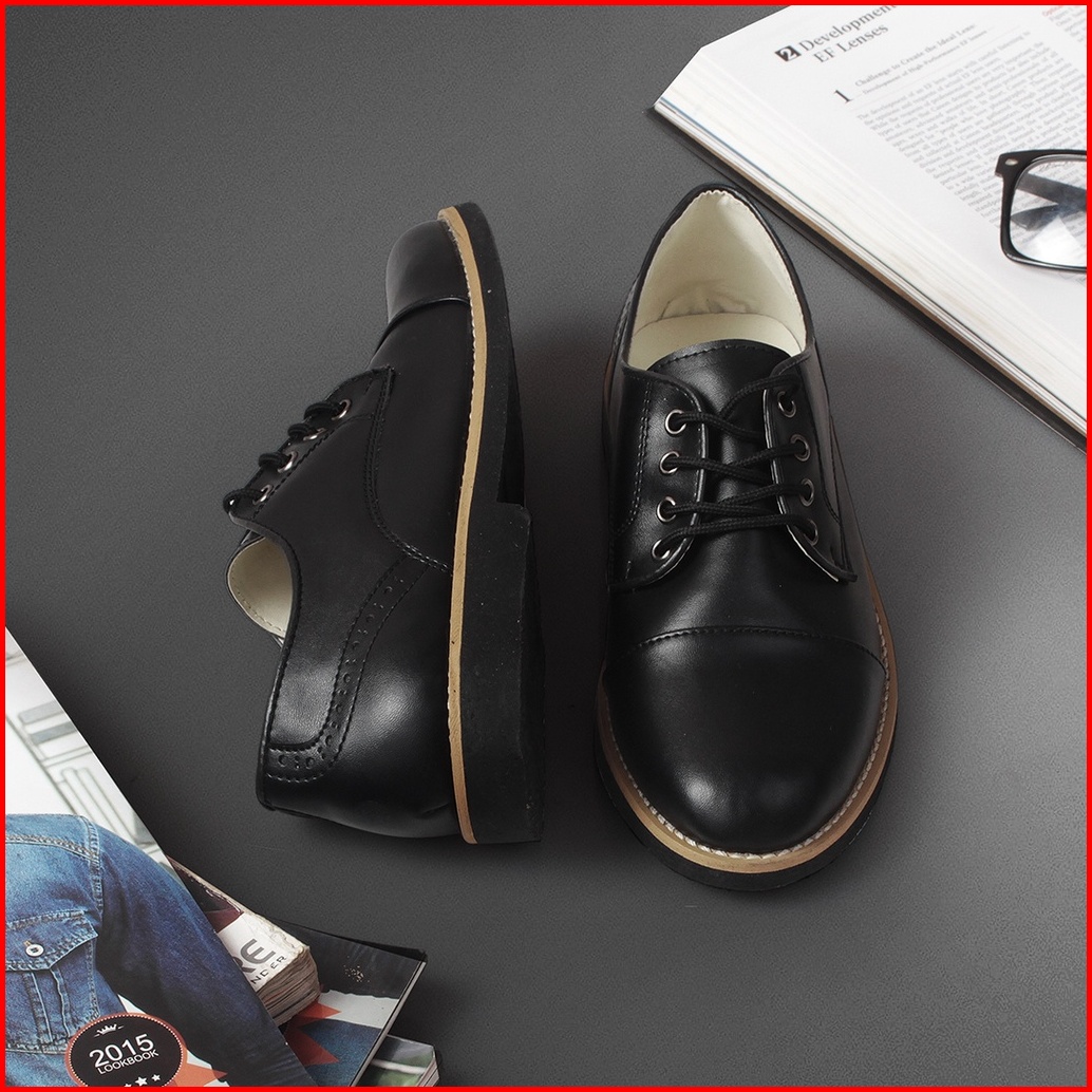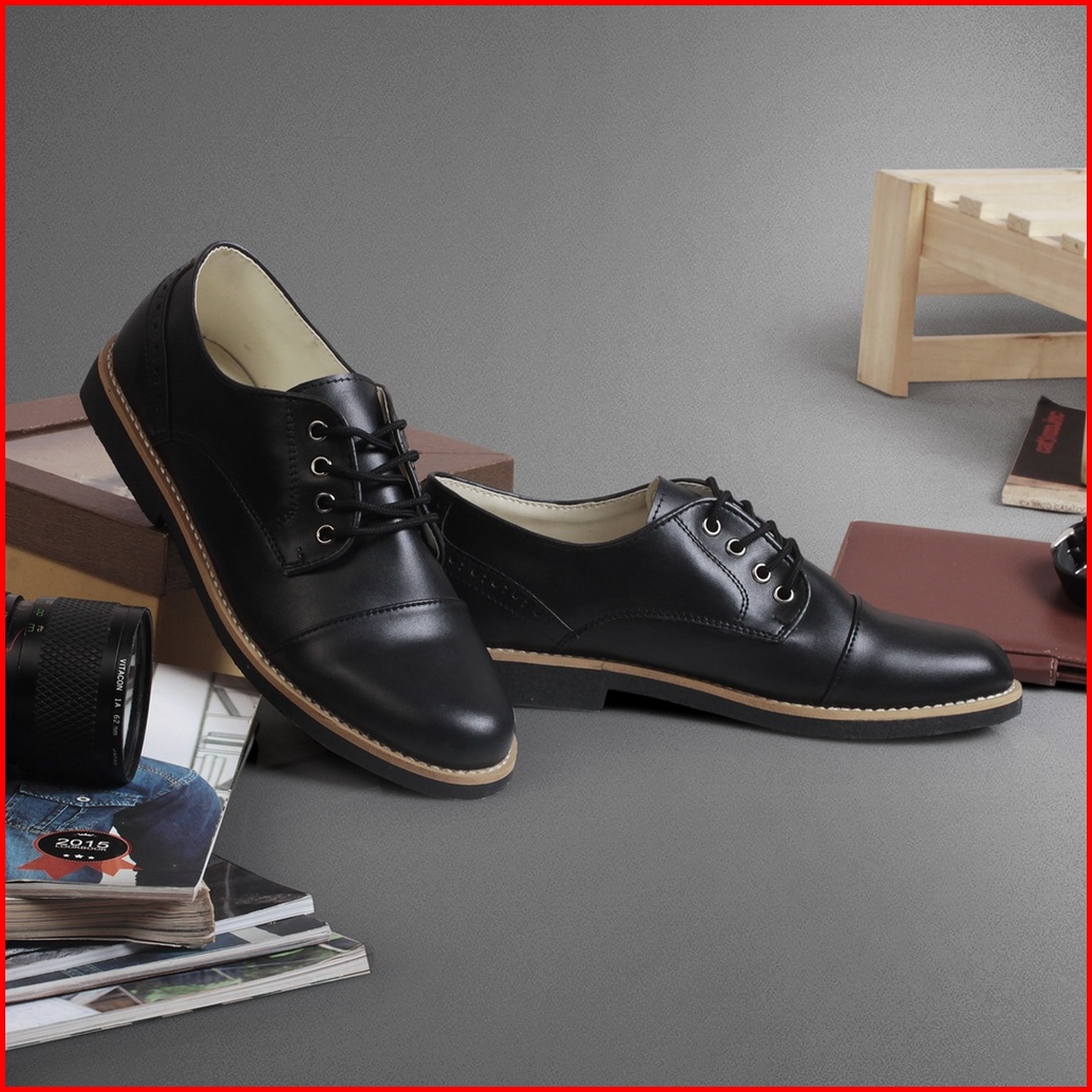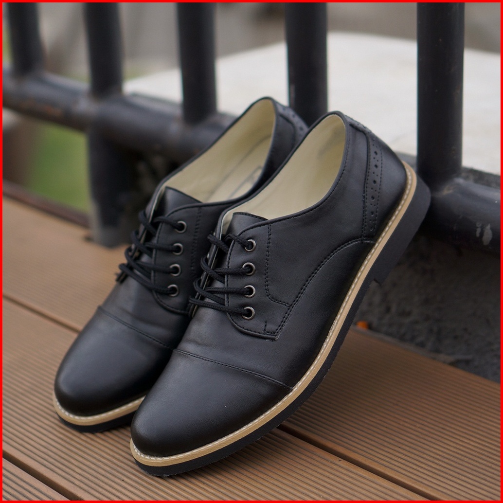 Wajendra X Mndy - Hawkin Black - Sepatu Kulit Pantofel Anti Slip Ringan Durable Anti Bau