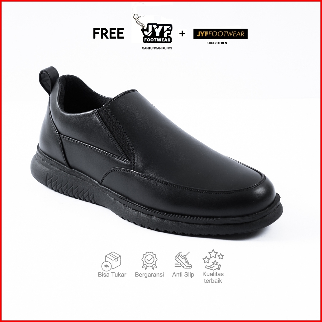 Jyf - Prestige Black Sepatu Slip On Pantofel Formal Pria Kulit Kerja Resmi Kuliah Kondangan