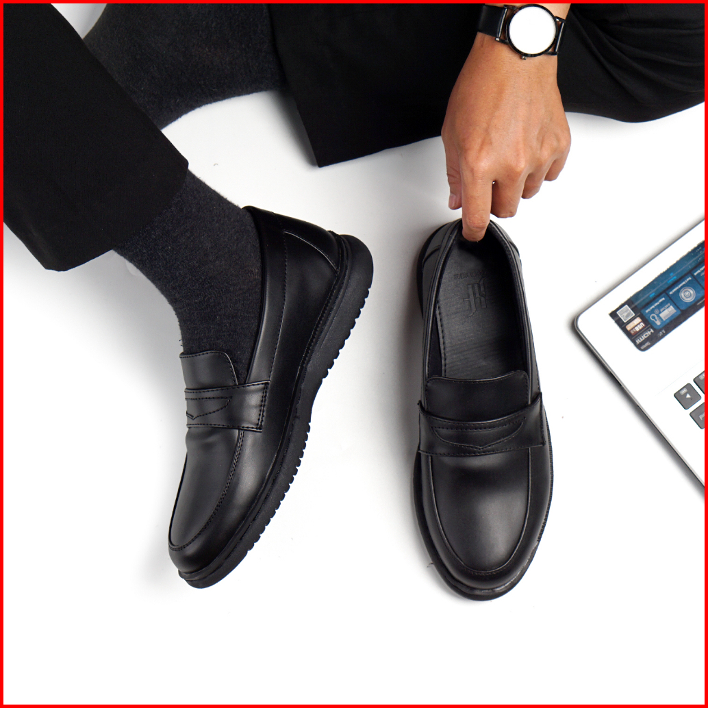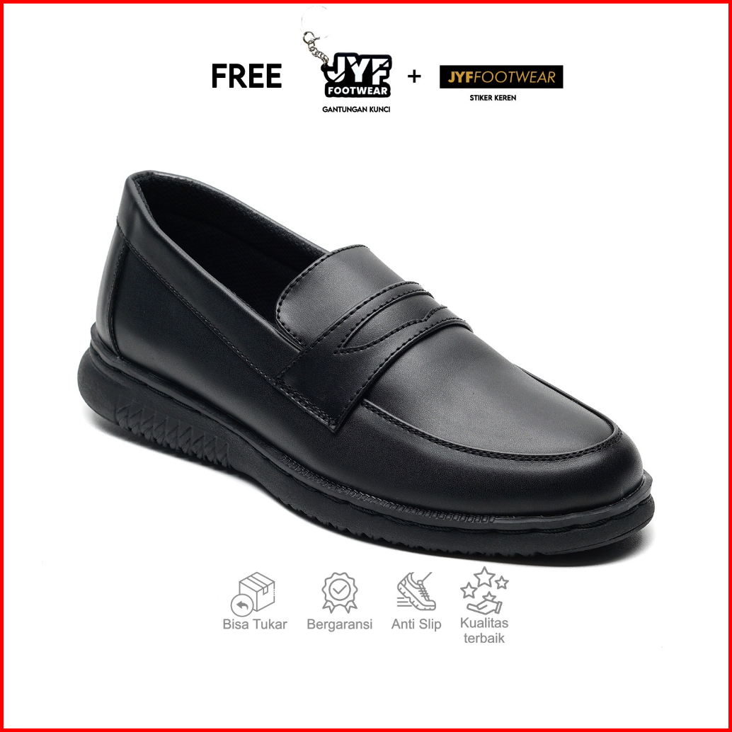 Jyf - Well Black Sepatu Slip On Pantofel Formal Pria Kulit Kerja Resmi Kuliah Kondangan