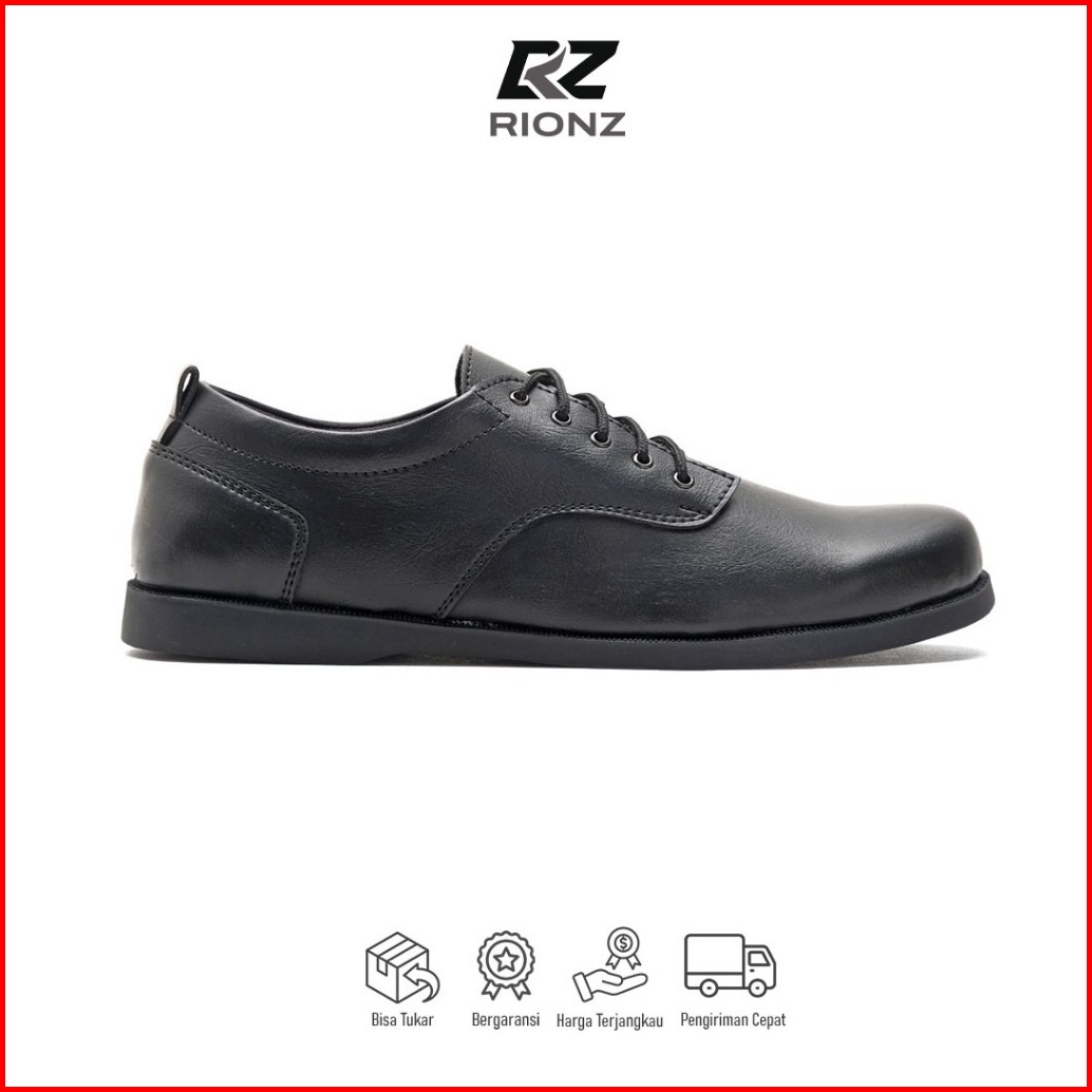 Rionz - Pires Black - Sepatu Formal Pria Pantofel Hitam Coklat Kantor