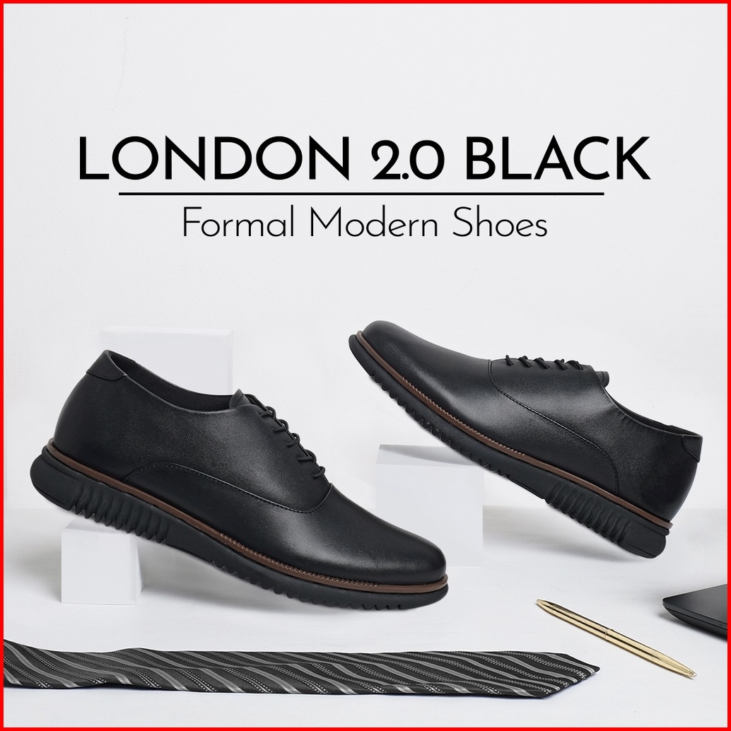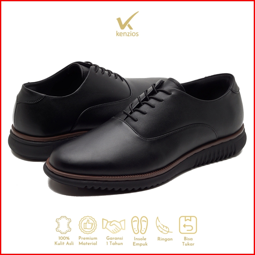 Kenzios Sepatu Formal Pria Kulit Asli London 2.0 Black Series