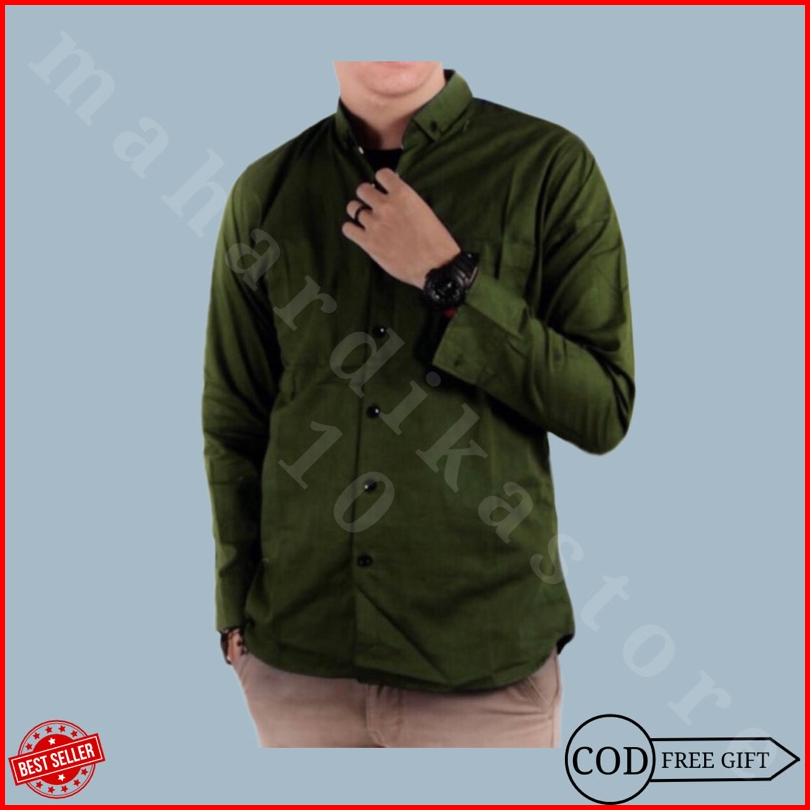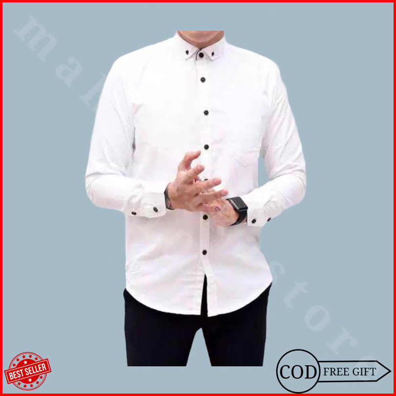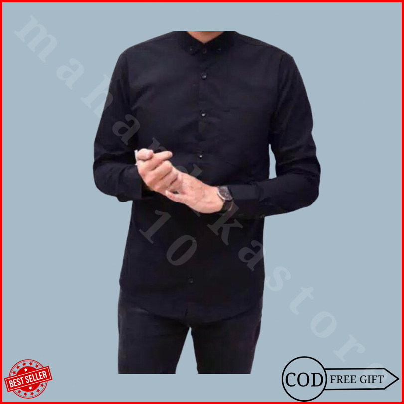 Kemeja Pria Polos Distro Katun Lengan Panjang Size M-xxxl Full Hangtag
