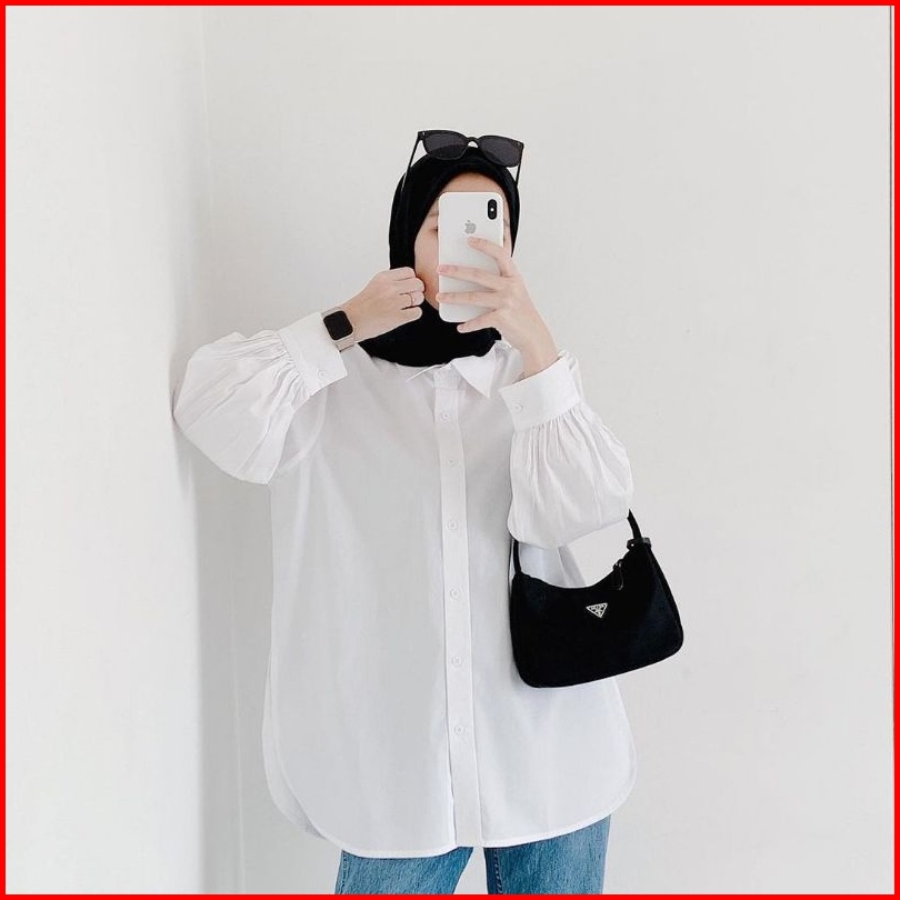 Atasan Wanita Putih Toyobo Import - Kemeja Basic Katun Toyobo Atasan Wanita Full Kancing Kerja Kantor Kuliah Ootd Sekola