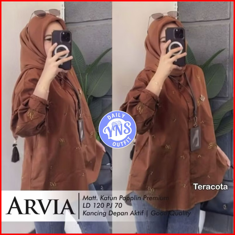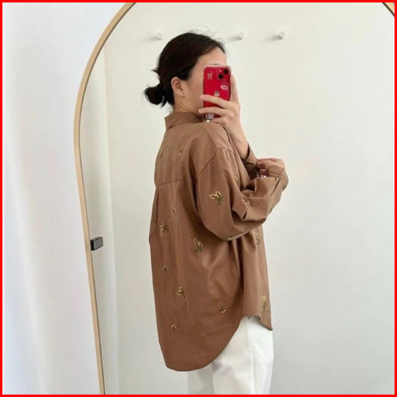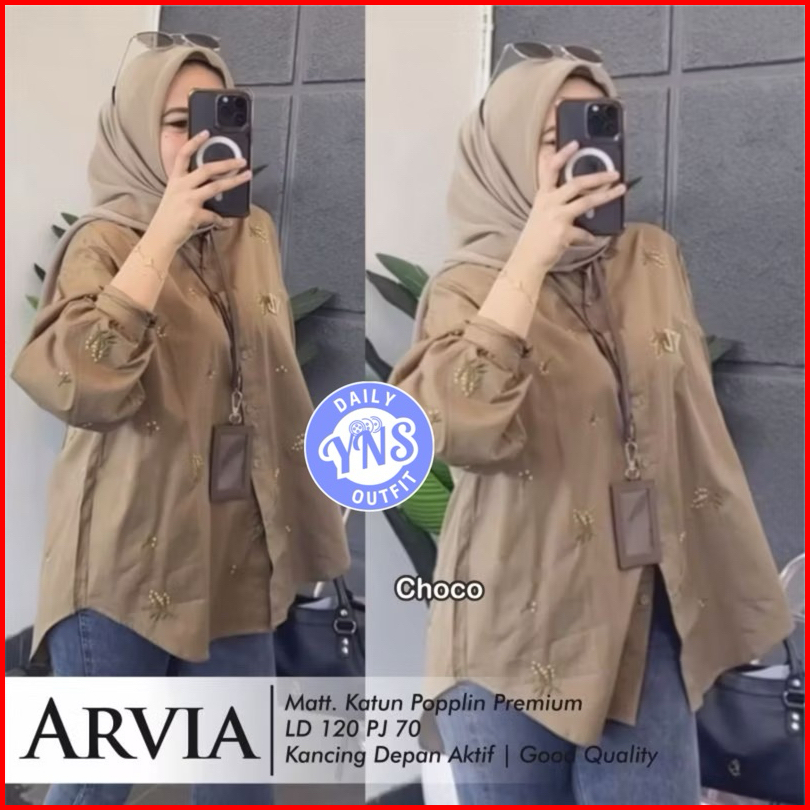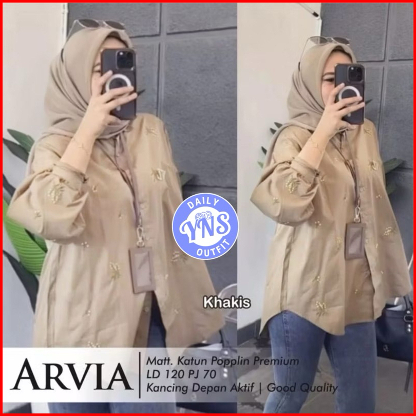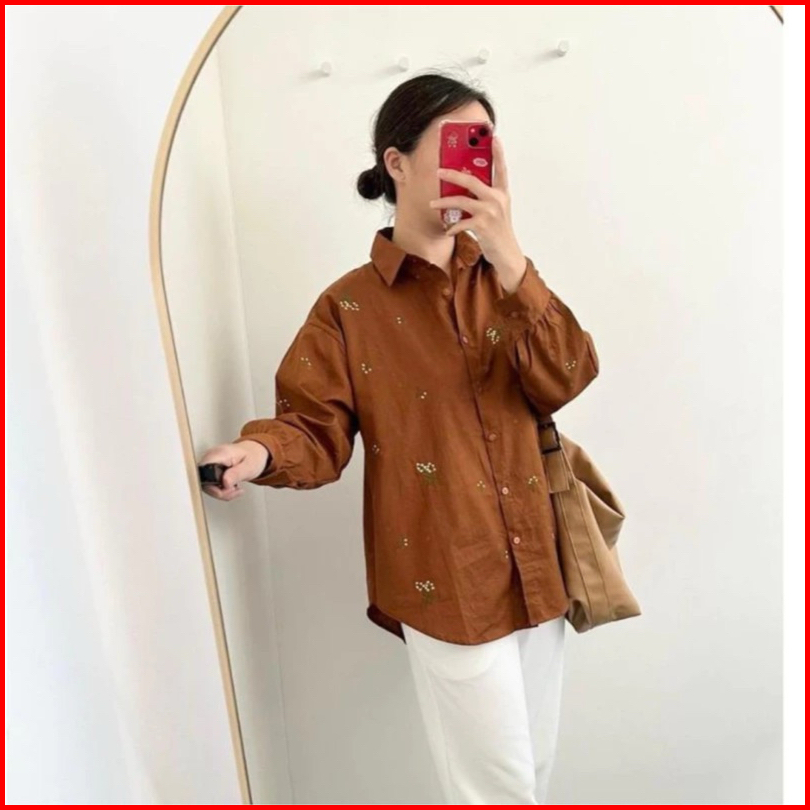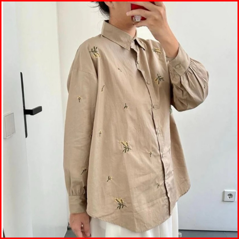 Kemeja Wanita Motif Bordir Bunga Premium Kekinian Terbaru Arvia