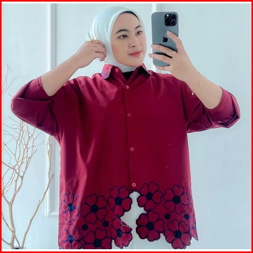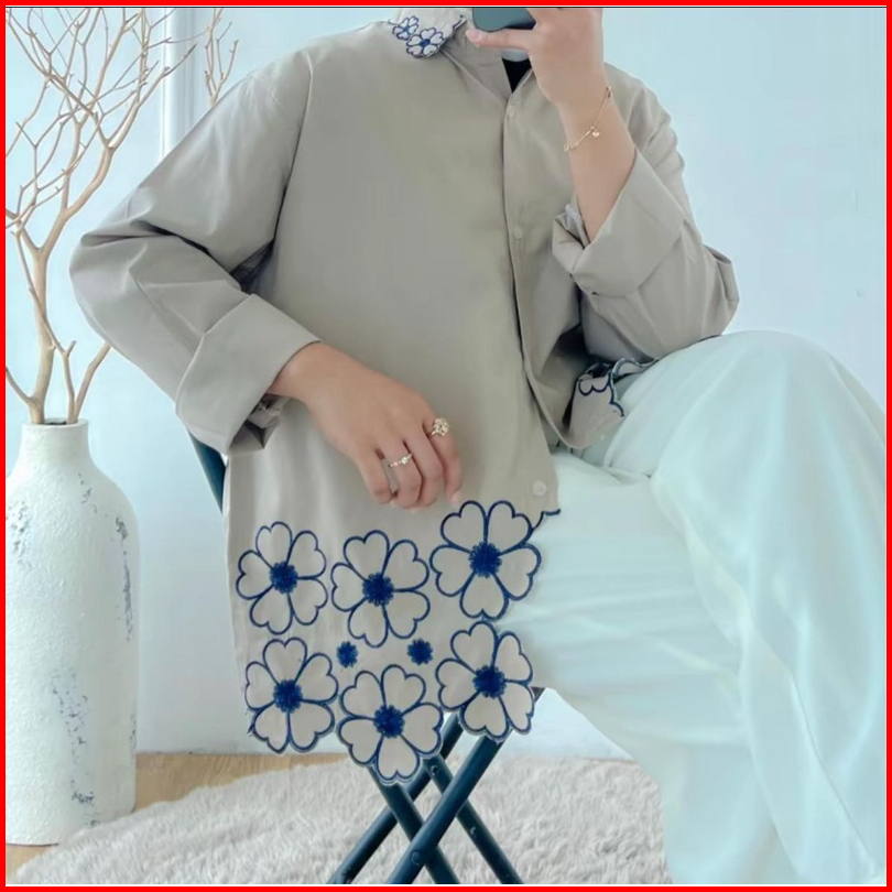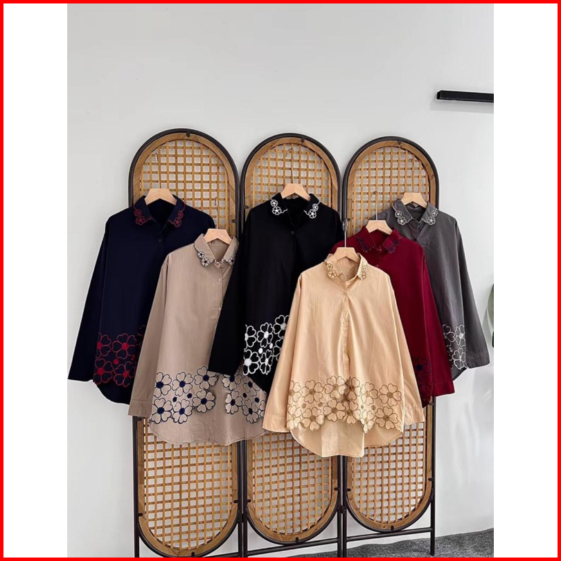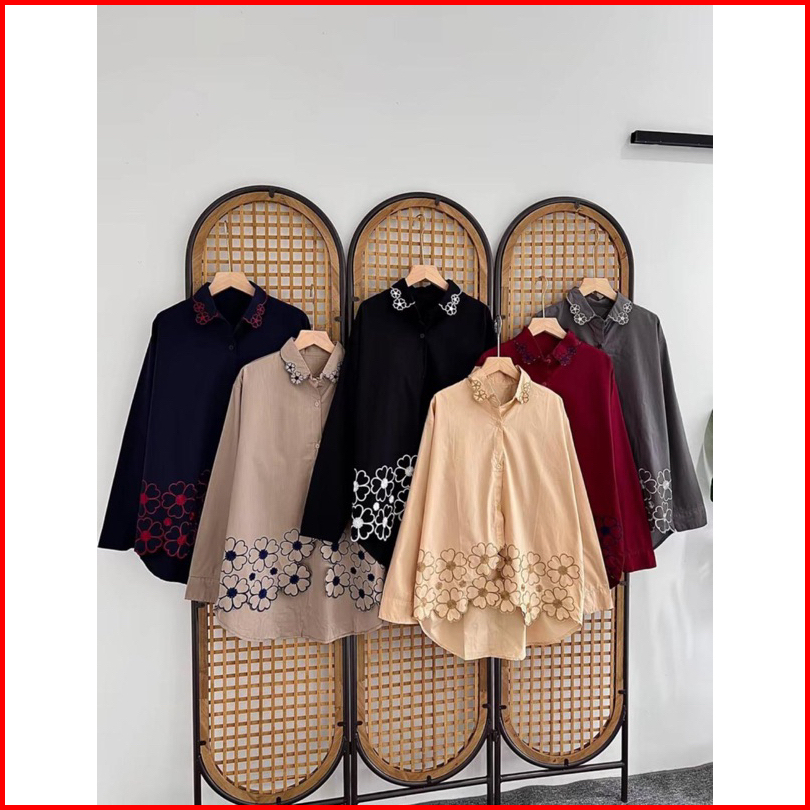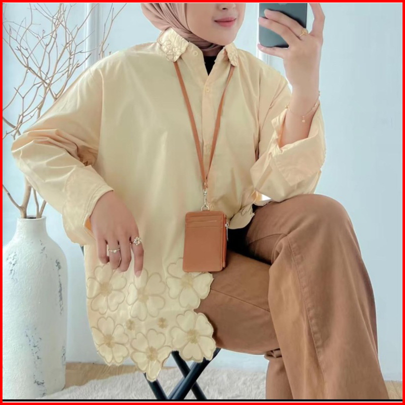 Abaya Blouse Bordir Wanita Terbaru Kemeja Bordir Katun Premium Blouse Bordir Wanita