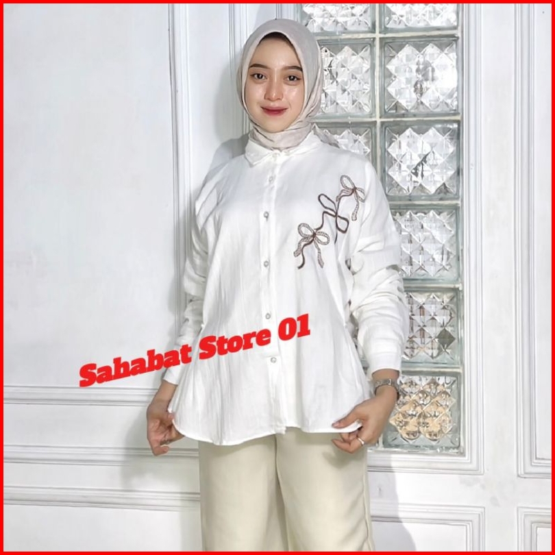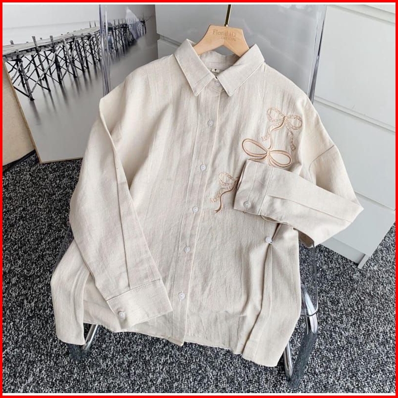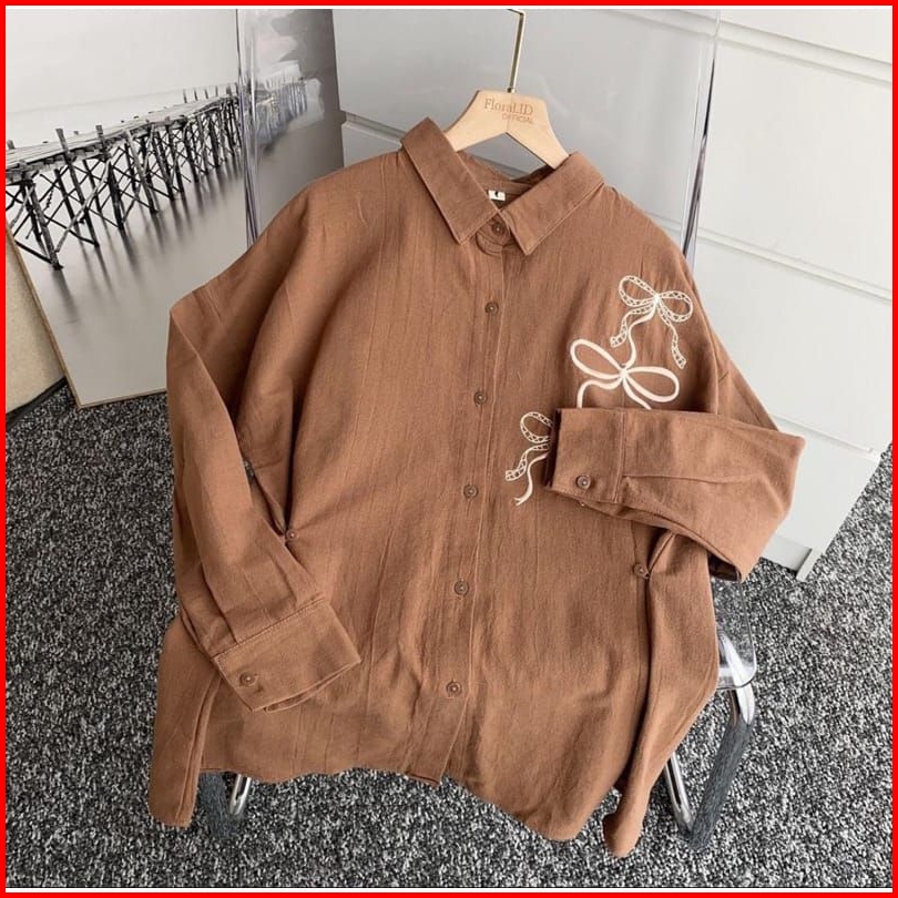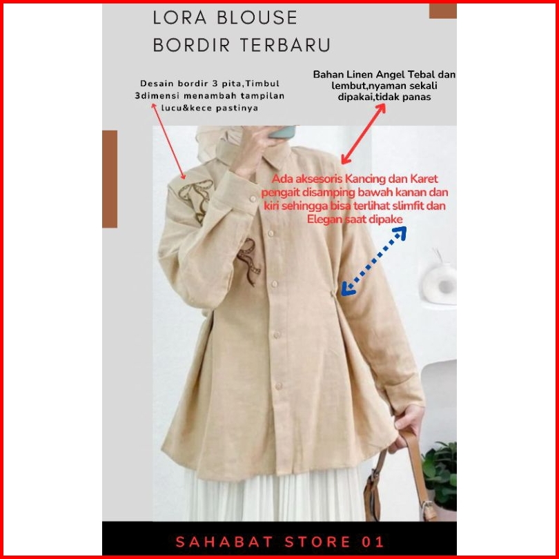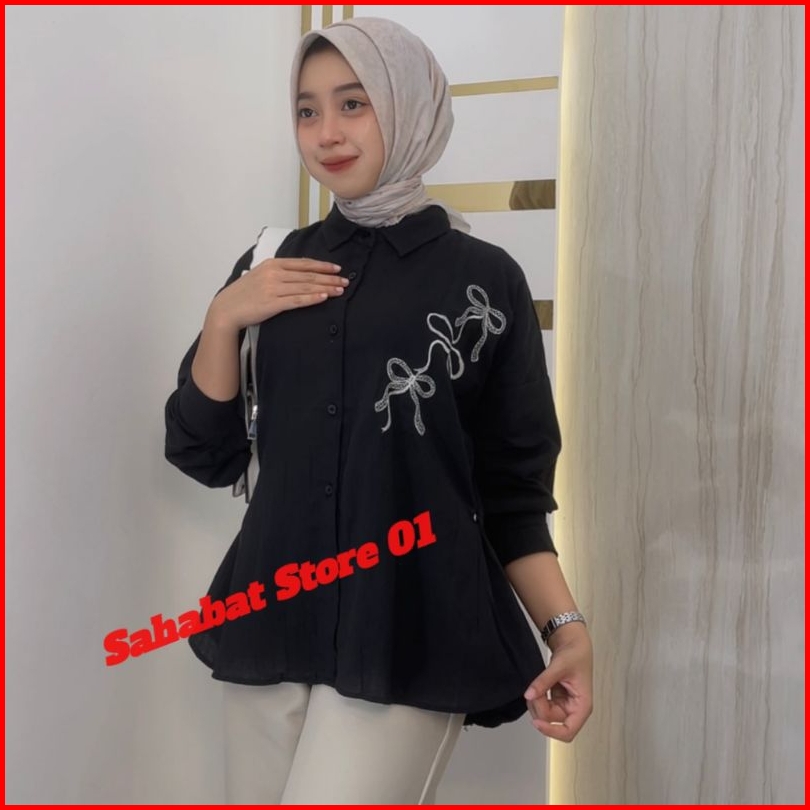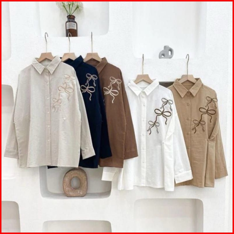 Lora Blouse Bordir Rebon Shirt Atasan Kemeja Wanita Bahan Linen Angel Premium