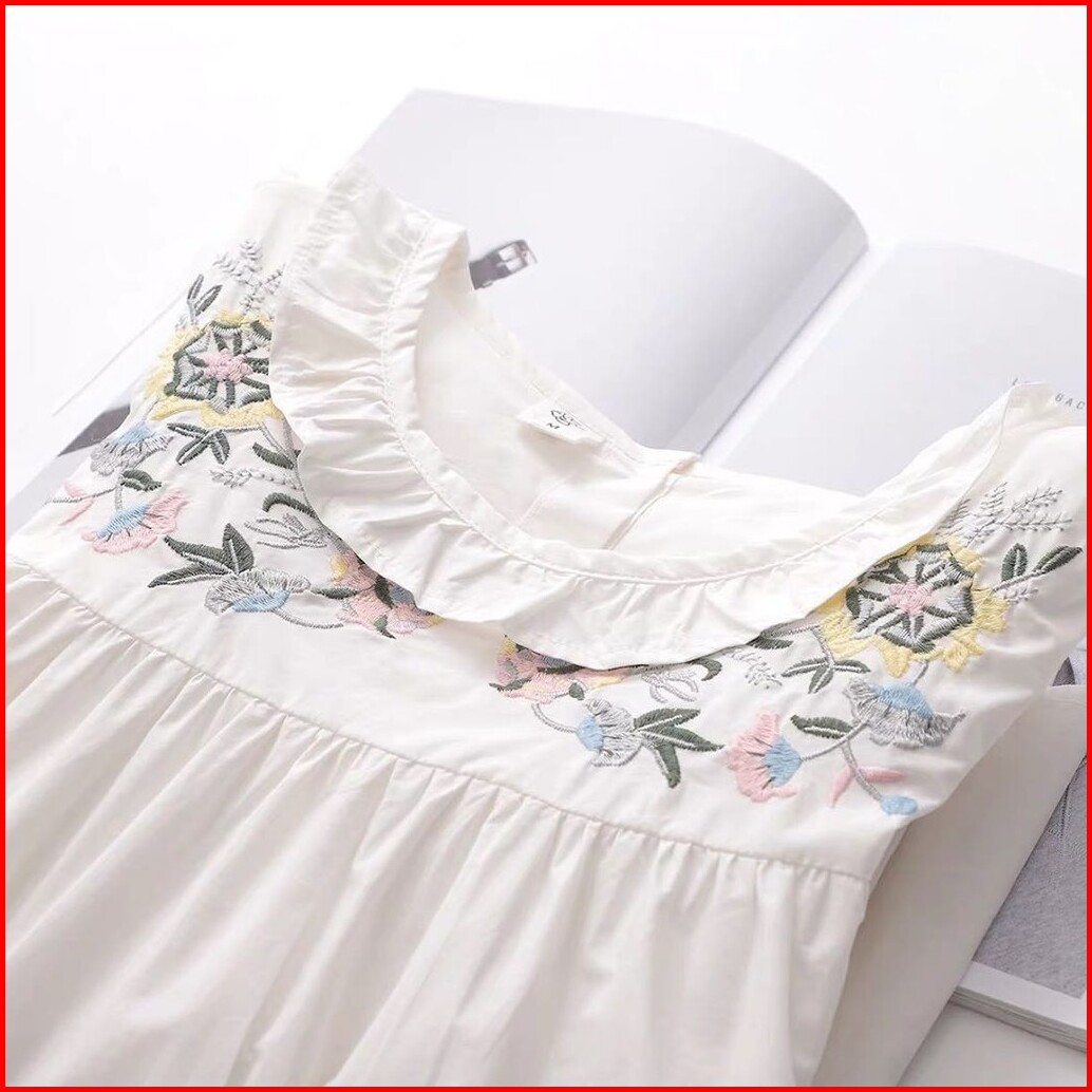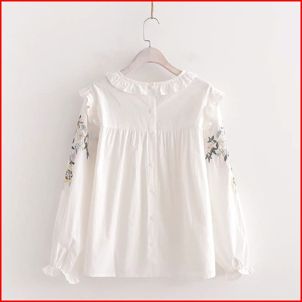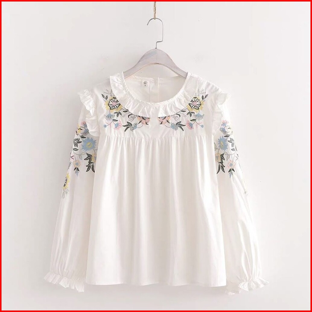 Wika Top Bordir Blouse Wanita Atasan Cewek Terbaru Blous Putih Blus Kekinian Murah Bunga Katun