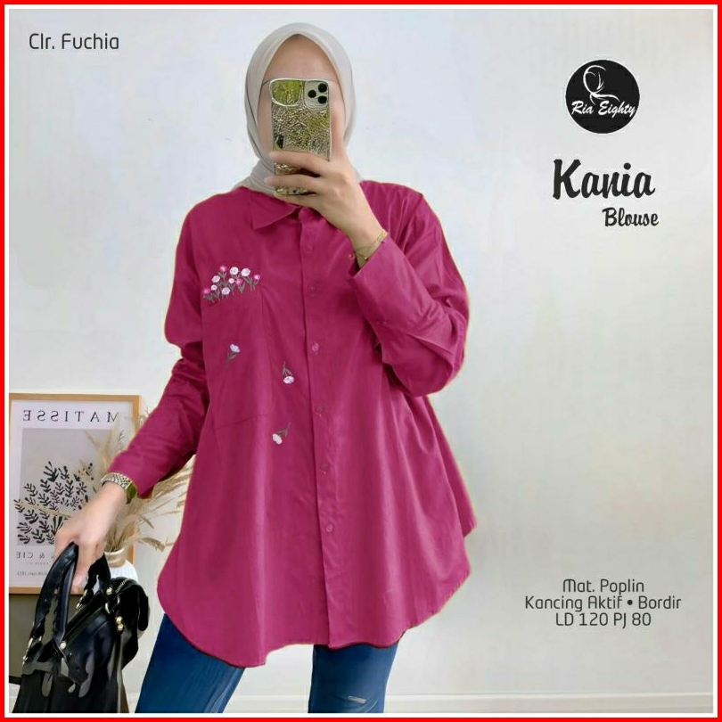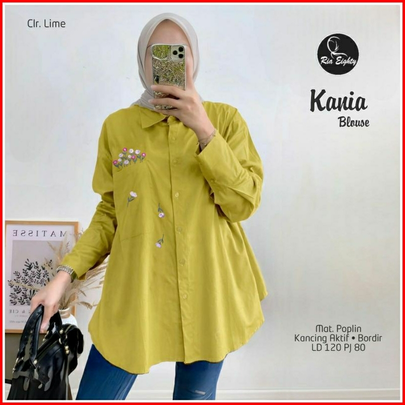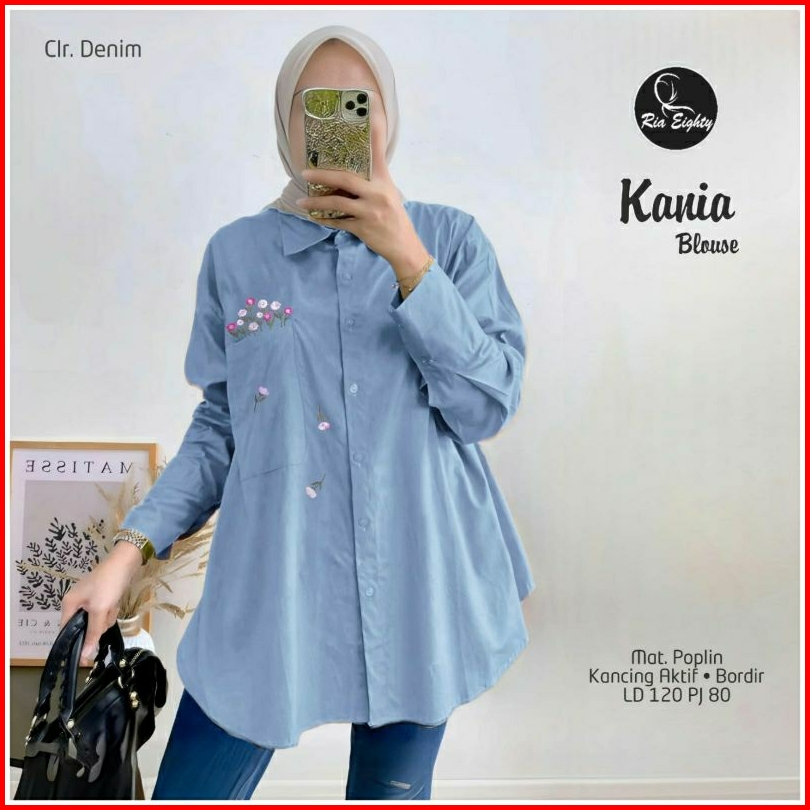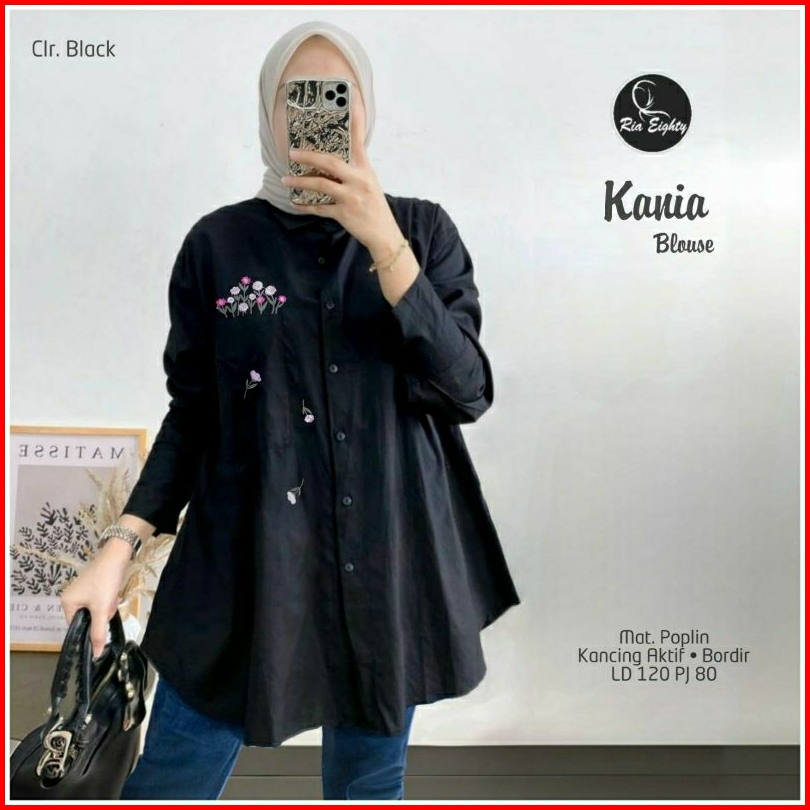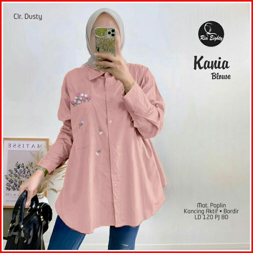 Kania Blouse Jumbo Ld 120 Pb 80 Poplin Tebel Halus Kancing Aktif Busui Friendly Aplikasi Bordir