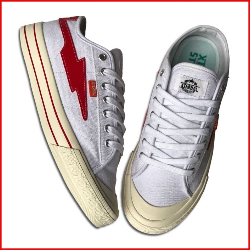 Xternalstepsure - Sepatu Unisex Series Mitterns Storm Low White Red Casual Pria Wanita