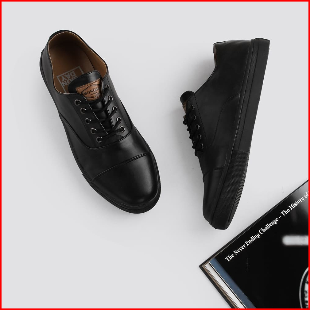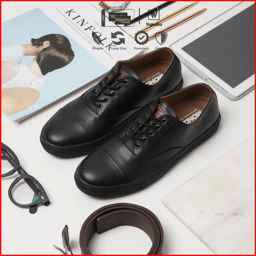 Wajendra X Mndy - Gum Oxford Full Black - Sepatu Kerja Pantofel Hitam Pria Anti Slip Anti Bau