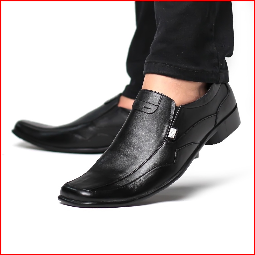 Cevany Sepatu Pantofel Pria Formal Kulit Asli Geovani S - G06 Hitam