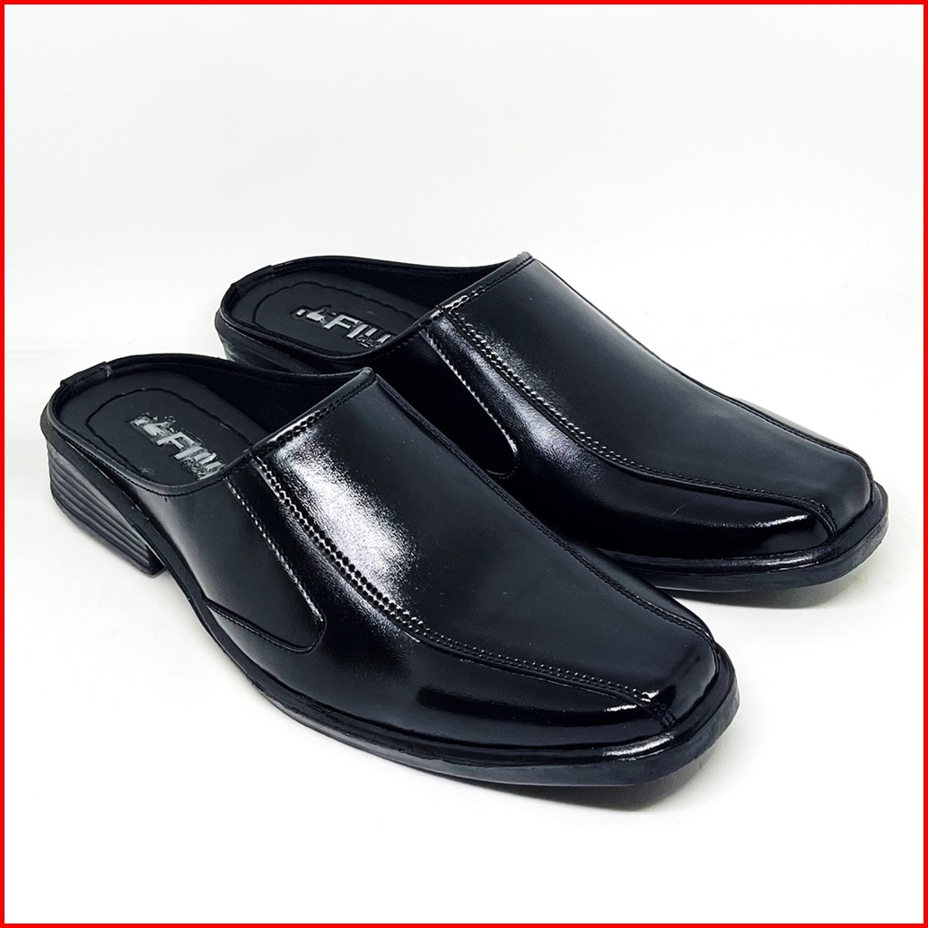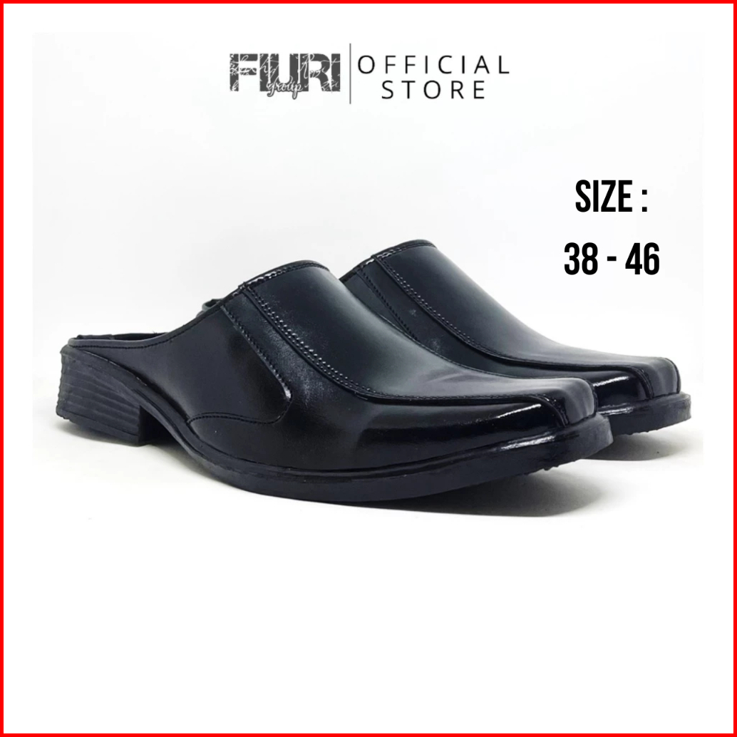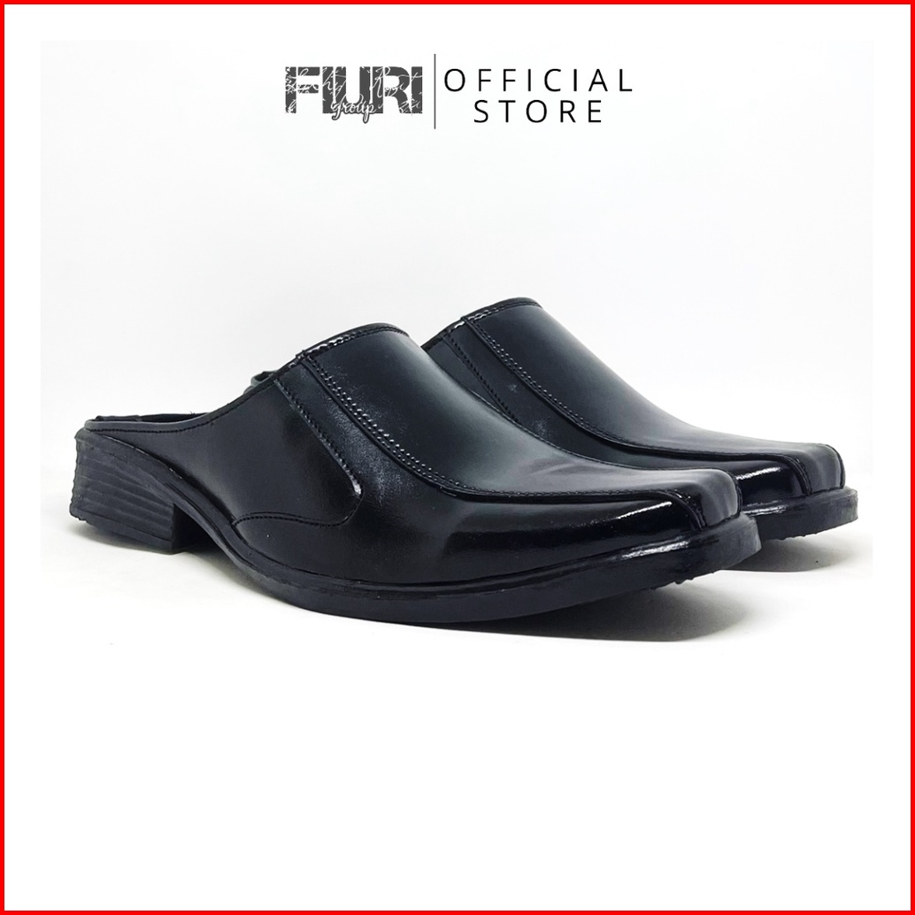 Fiuri - Luki 38-46 - Sepatu Pantofel Selop Bustong Slip On Kerja Kantor Formal Pria - Hitam