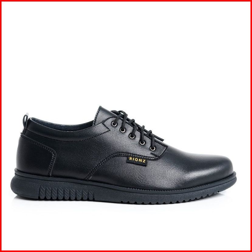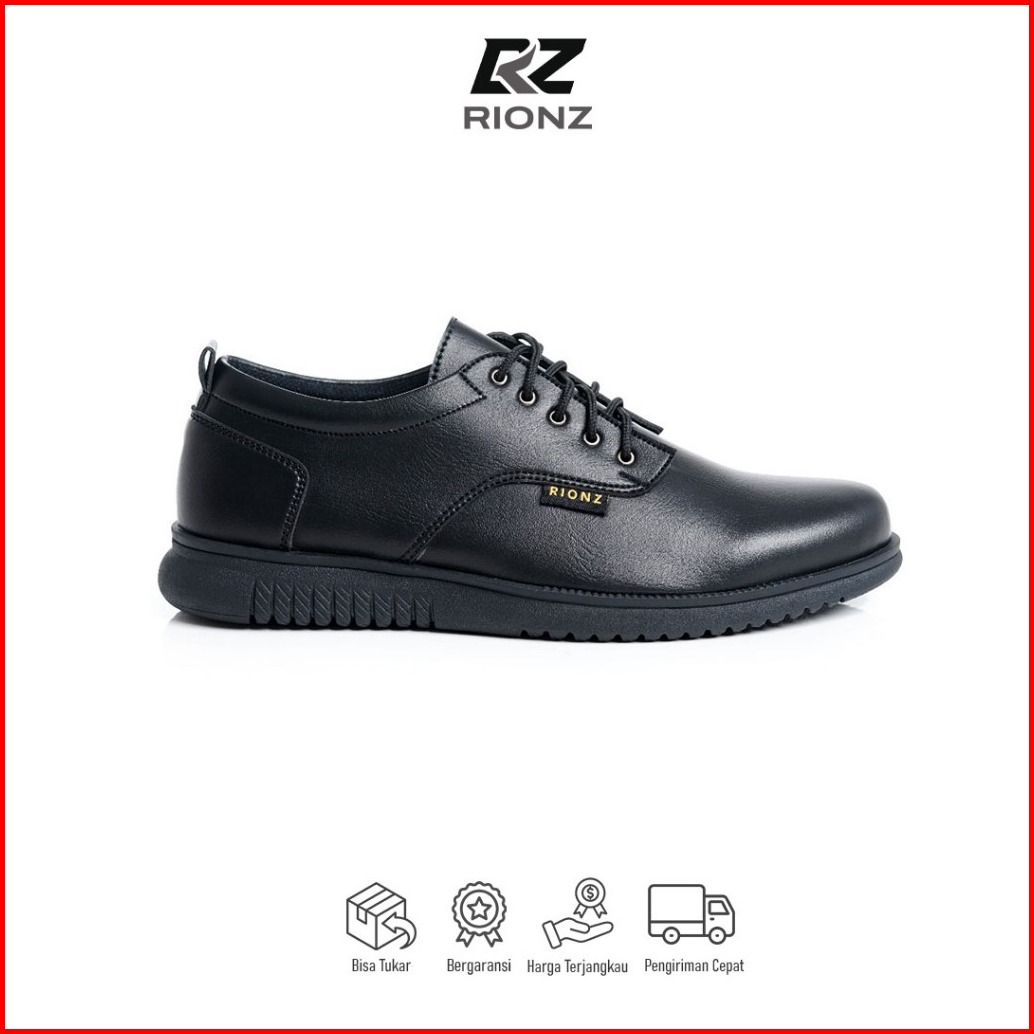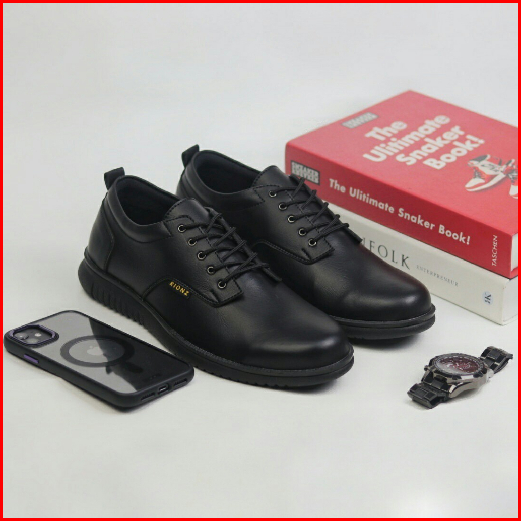 Rionz - Patric Black - Sepatu Formal Pria Pantofel Tali Hitam Kantor