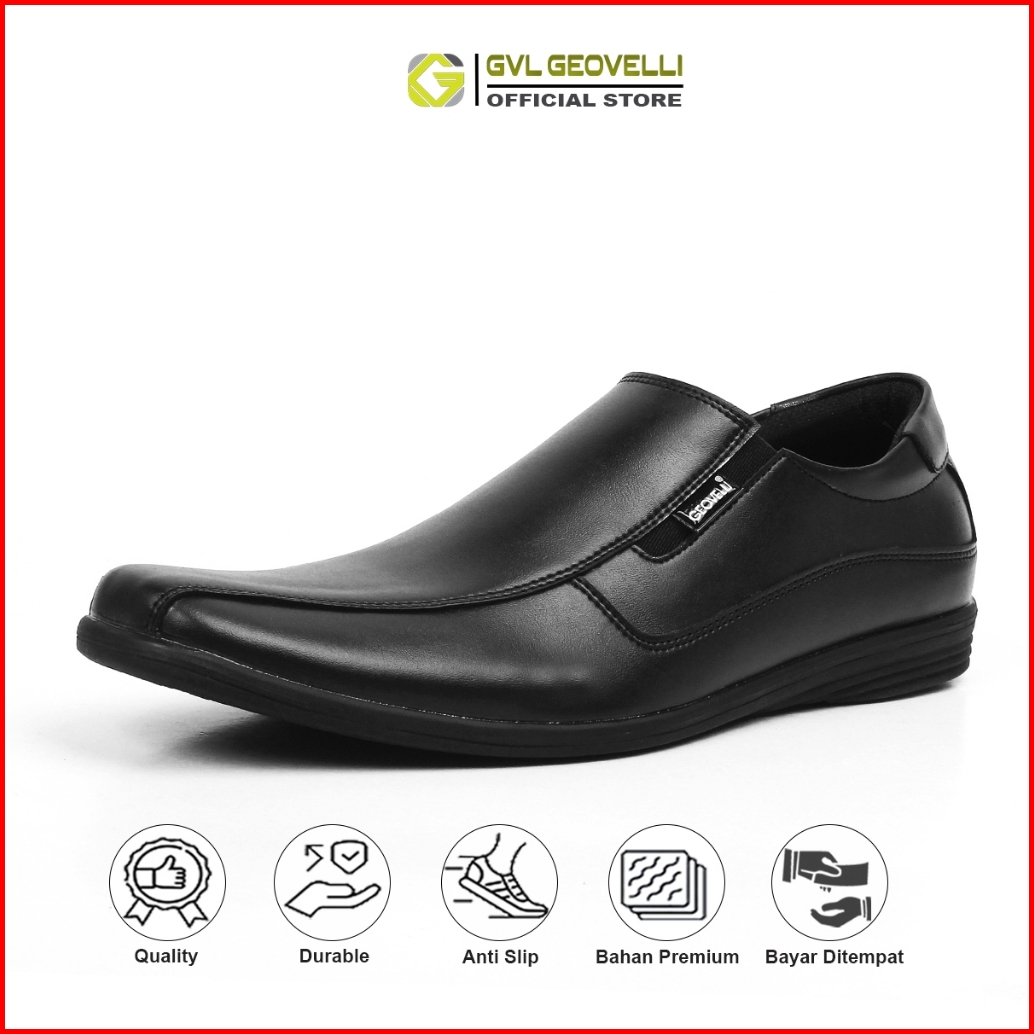 Gvl Geovelli Sepatu Formal Pria Pantopel Hitam Kasual G-1924 Brand Lokal Kerja Kantoran