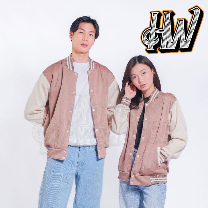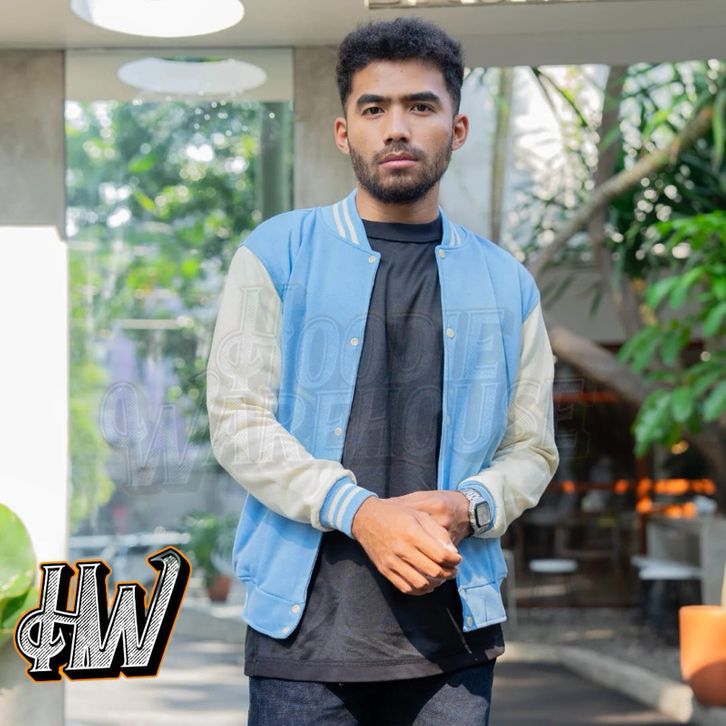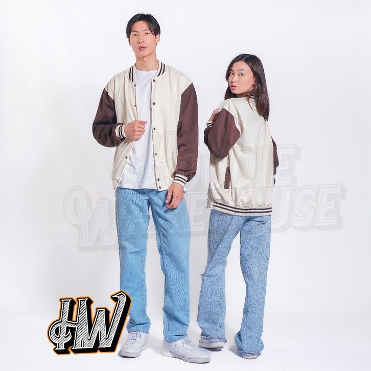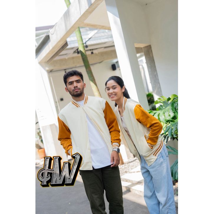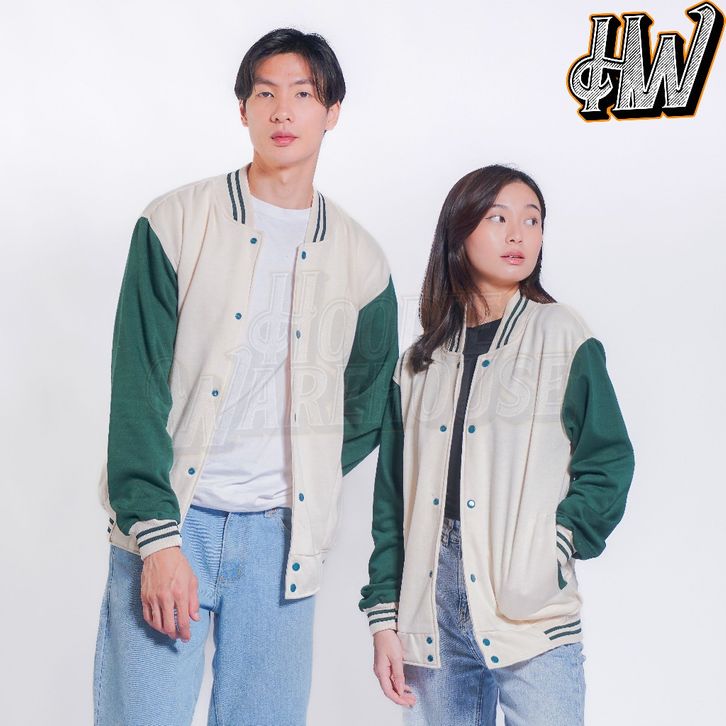 JAKET BASEBAL VARSITY KANCING NAVY TANGAN CREAM POLOS PRIA DAN WANITA UNISEX M-XXL