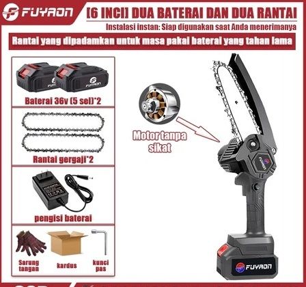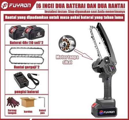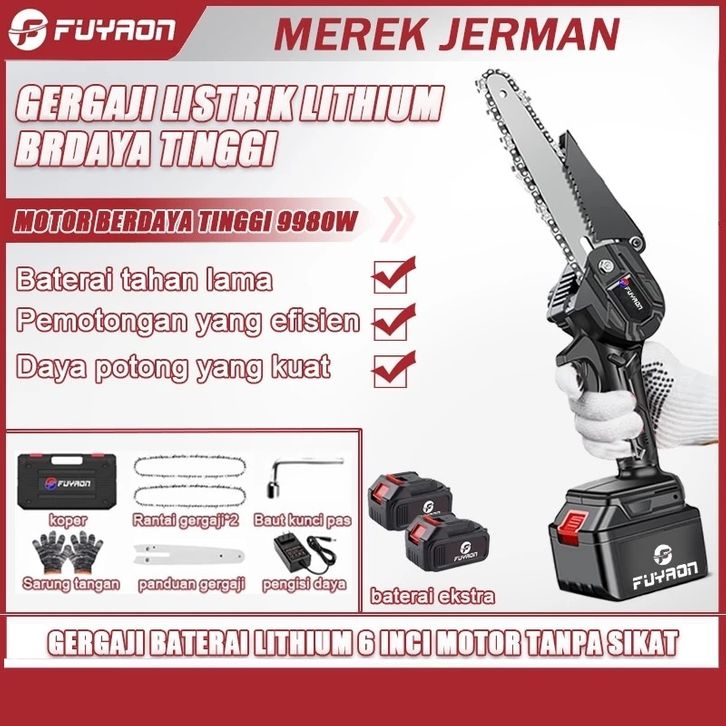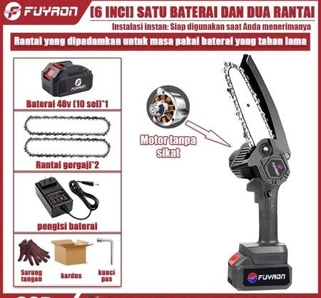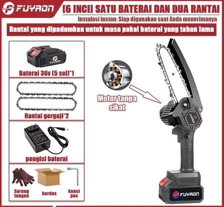FUYAON Mesin Chainsaw 6 Inch Cordless Chainsaw 36V Gergaji Baterai Gergaji Rantai Elektrik Mini 2 baterai Gergaji Listri