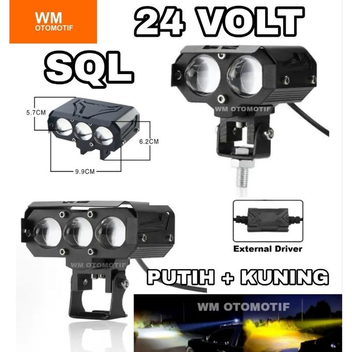 Lampu Tembak Mobil Lampu Tembak Lasergun 24 Volt SQL 2 3 Mata LED SQL2 SQL3 Sorot Truk Bus Canter Putih Kuning 2 Warna